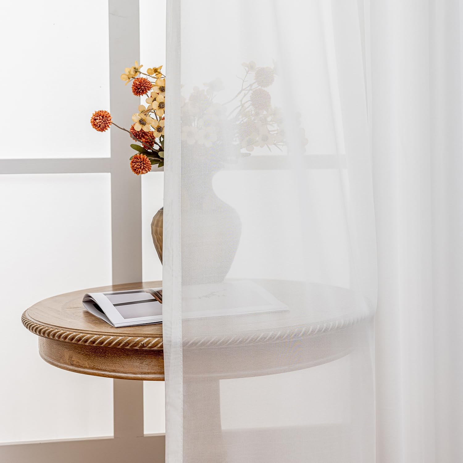 Off White Sheer Curtains 108-inch Long Pinch Pleated Curtains for Bedroom Liv...