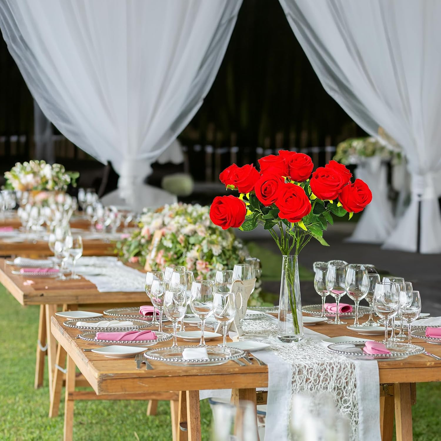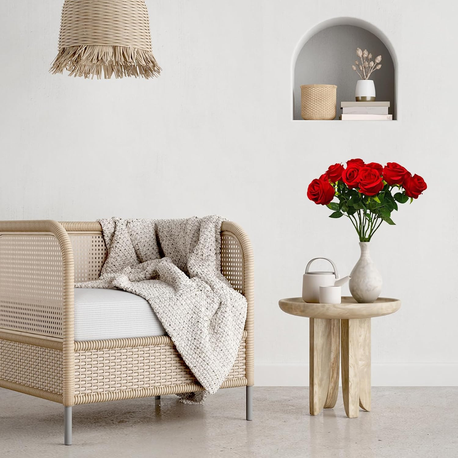 Red Artificial Roses with Long Stems - 12 Realistic Faux Flowers for Decor