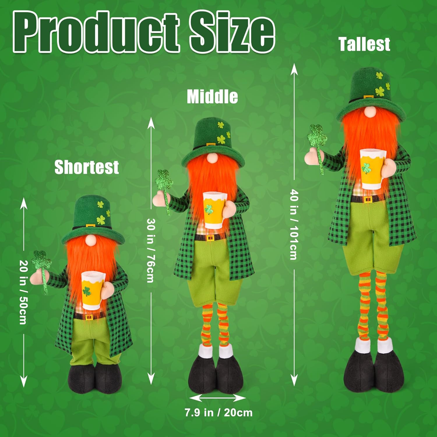 St. Patrick's Day Gnome Plush Decor with Retractable Legs for Indoor/Outdoor Use