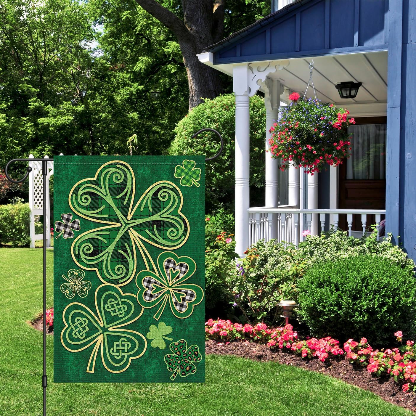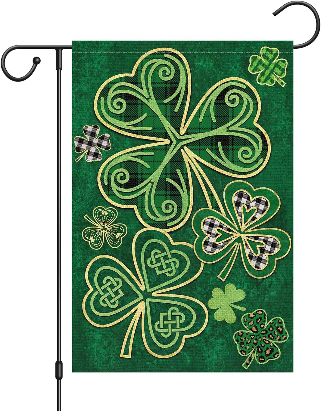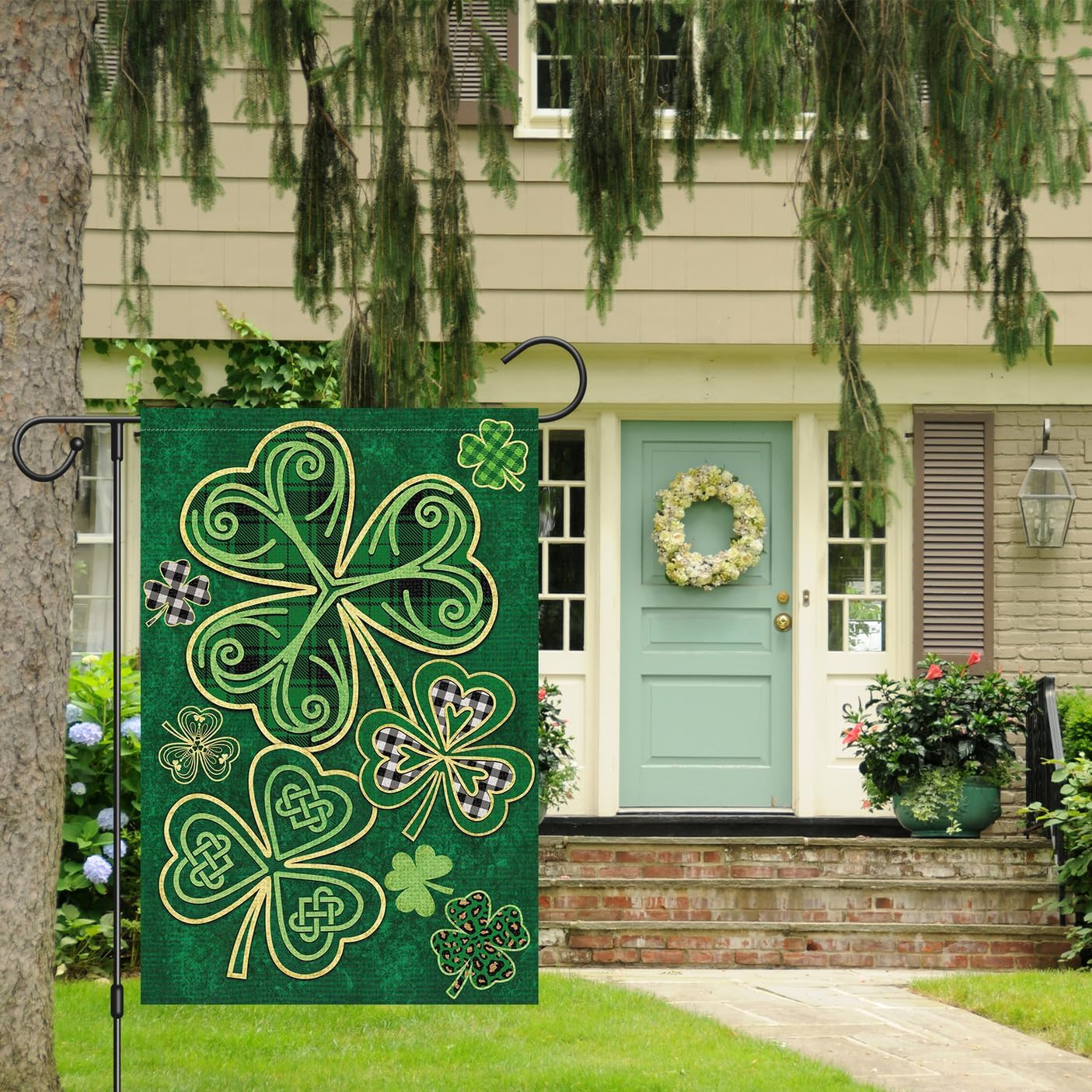 St. Patrick's Day Double-Sided Garden Flag - Lucky Shamrock Burlap Decor