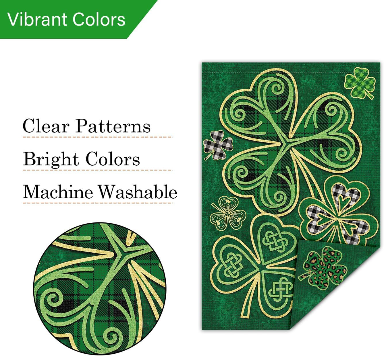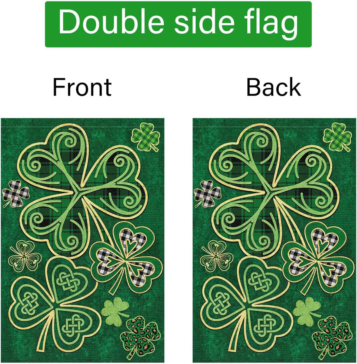 как выглядит St. Patricks Day Double-Sided Garden Flag - Lucky Shamrock Burlap Decor фото