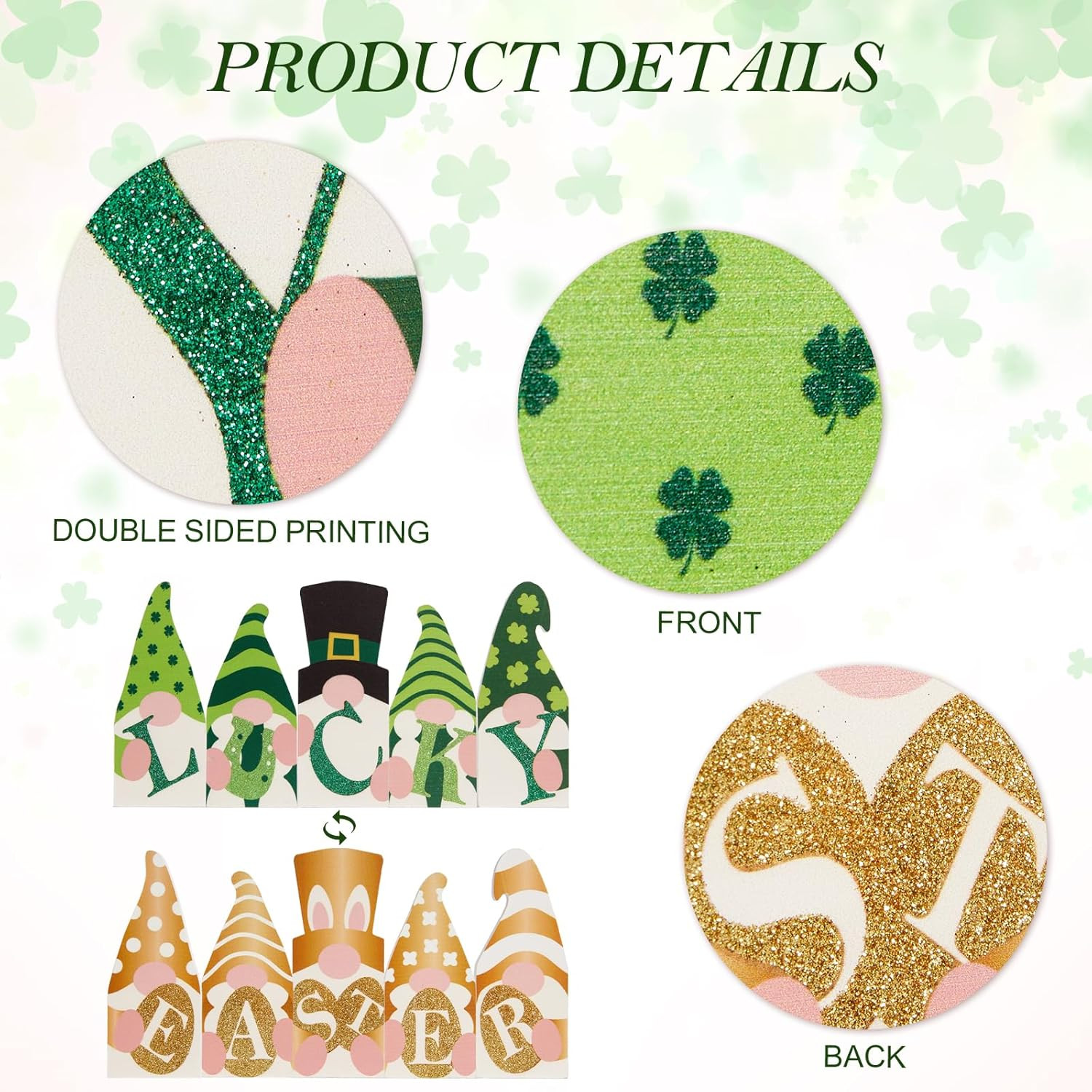 как выглядит 5-Piece Reversible Gnome Decor for St. Patricks Day and Easter фото
