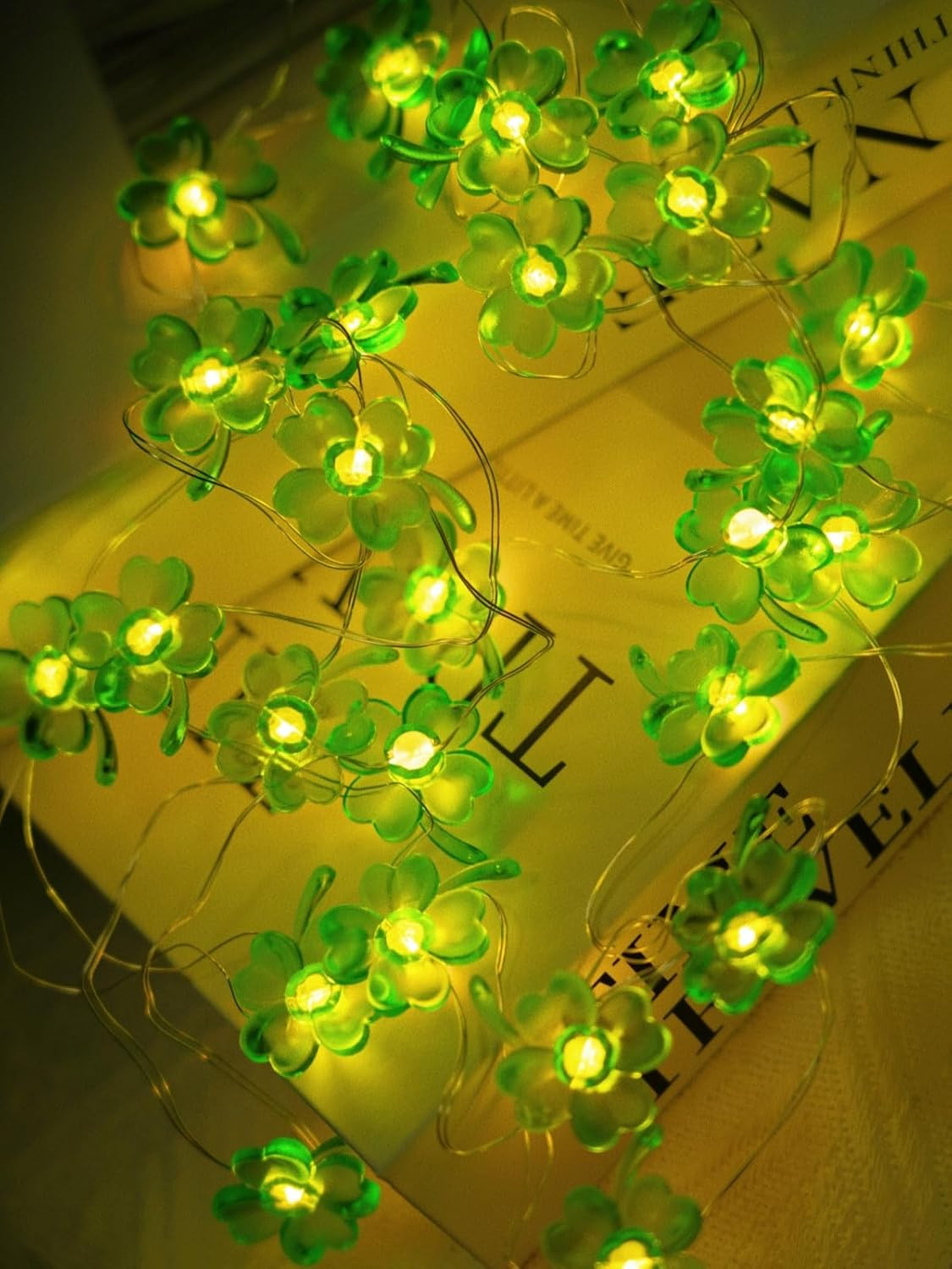 как выглядит St. Patricks Day Green Shamrock LED String Lights - 10ft Battery Operated фото