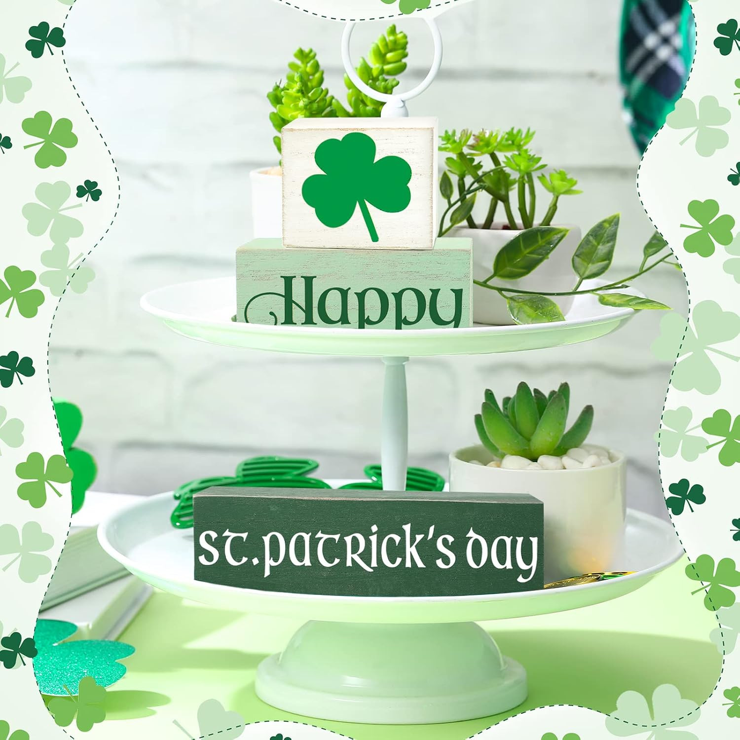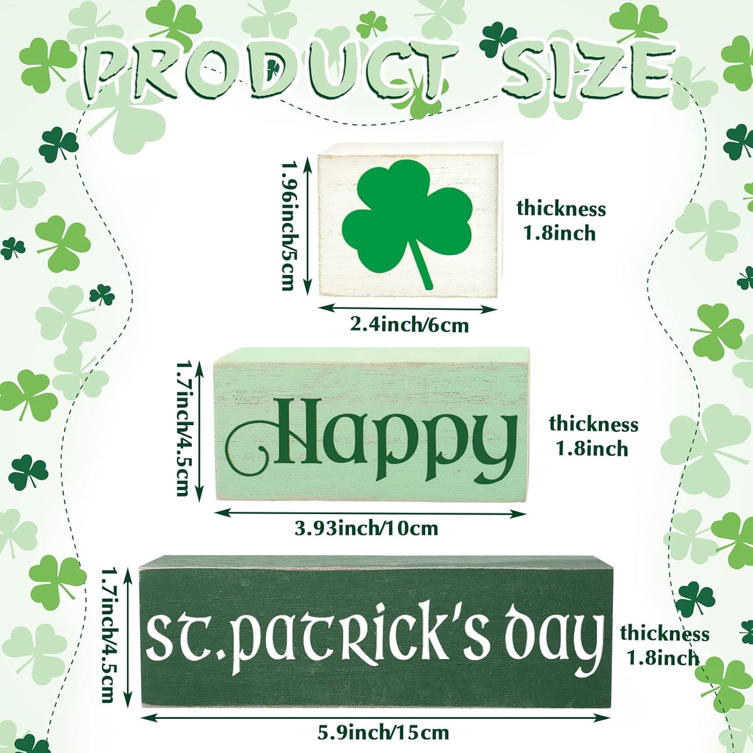St. Patrick's Day Wooden Shamrock Block Signs - 3 Piece Table Decor Set