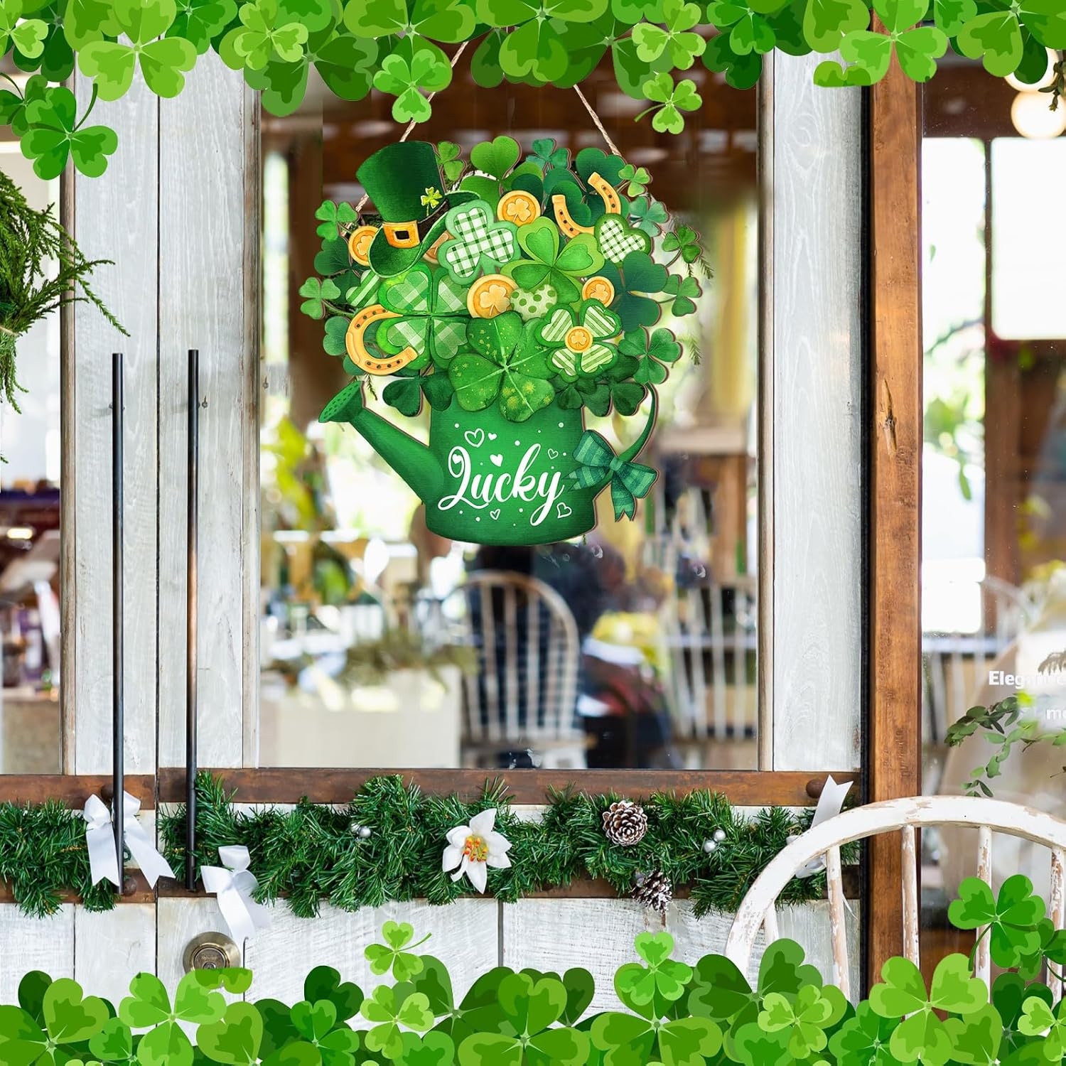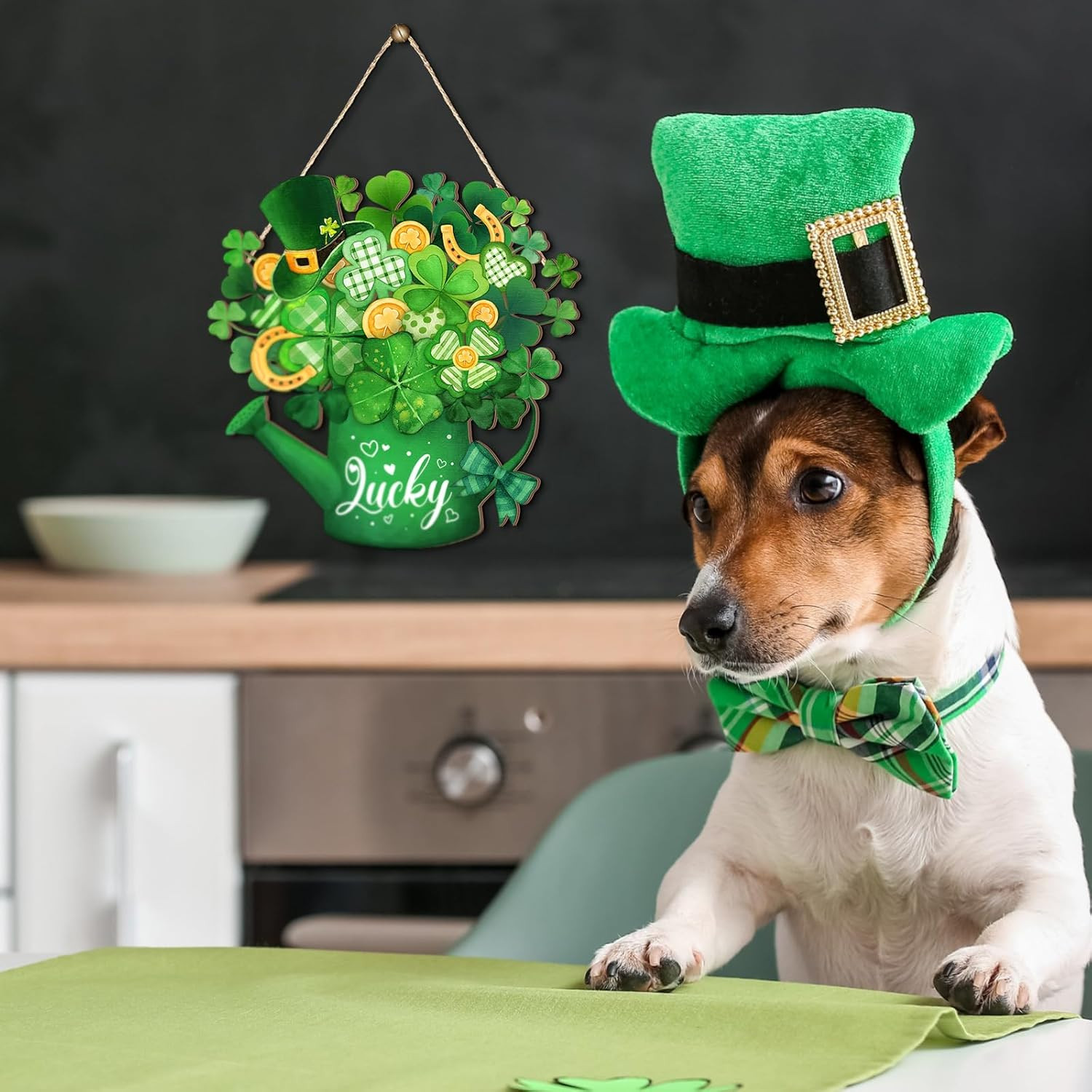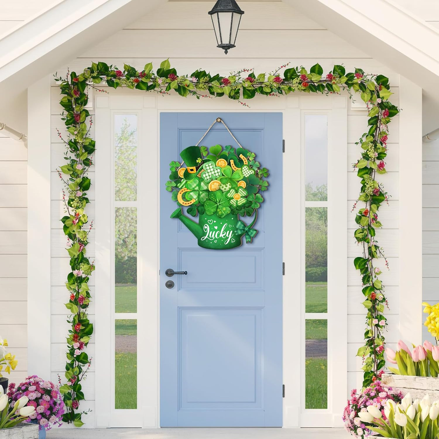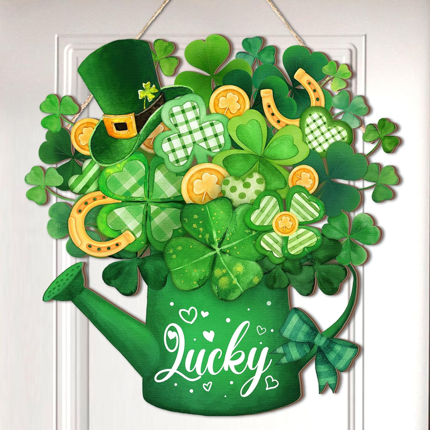 как выглядит St. Patricks Day Shamrock Welcome Sign for Indoor/Outdoor Decor 11.81 фото
