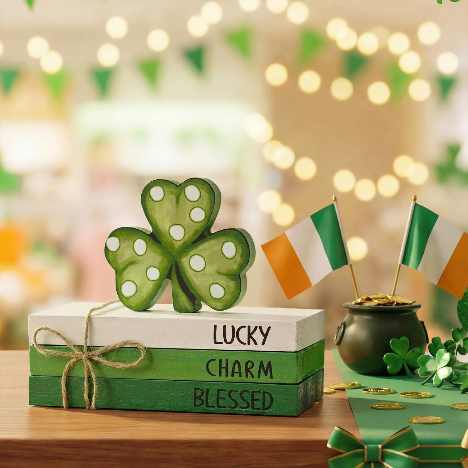 St. Patrick's Day Wooden Decor Blocks - Lucky Charm Shamrock Shelf Sign