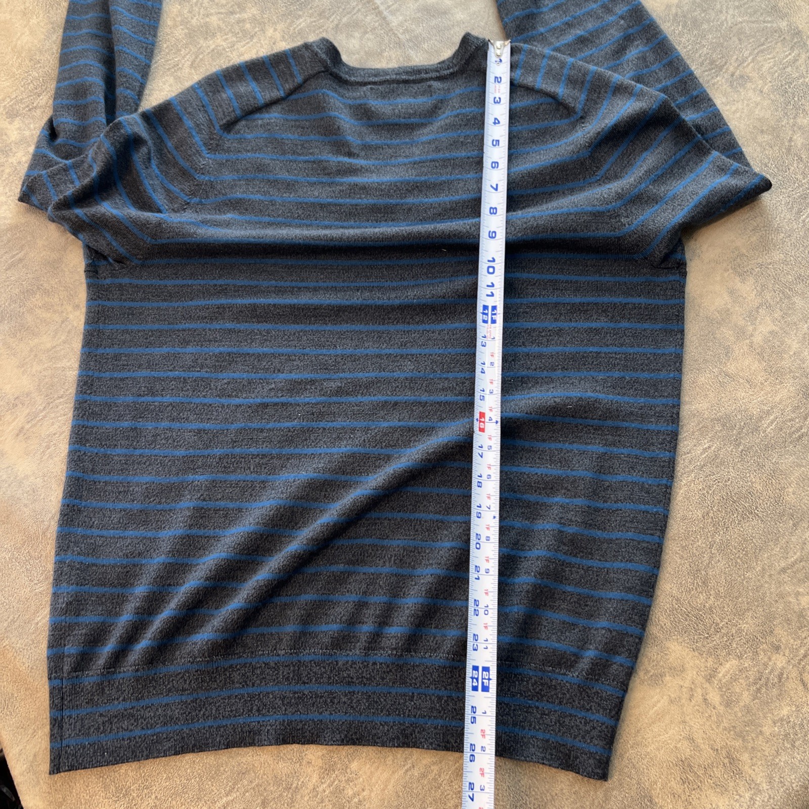 как выглядит Banana Republic Baruffa Merino Wool Sweater Mens L Gray Blue Stripe V-Neck фото