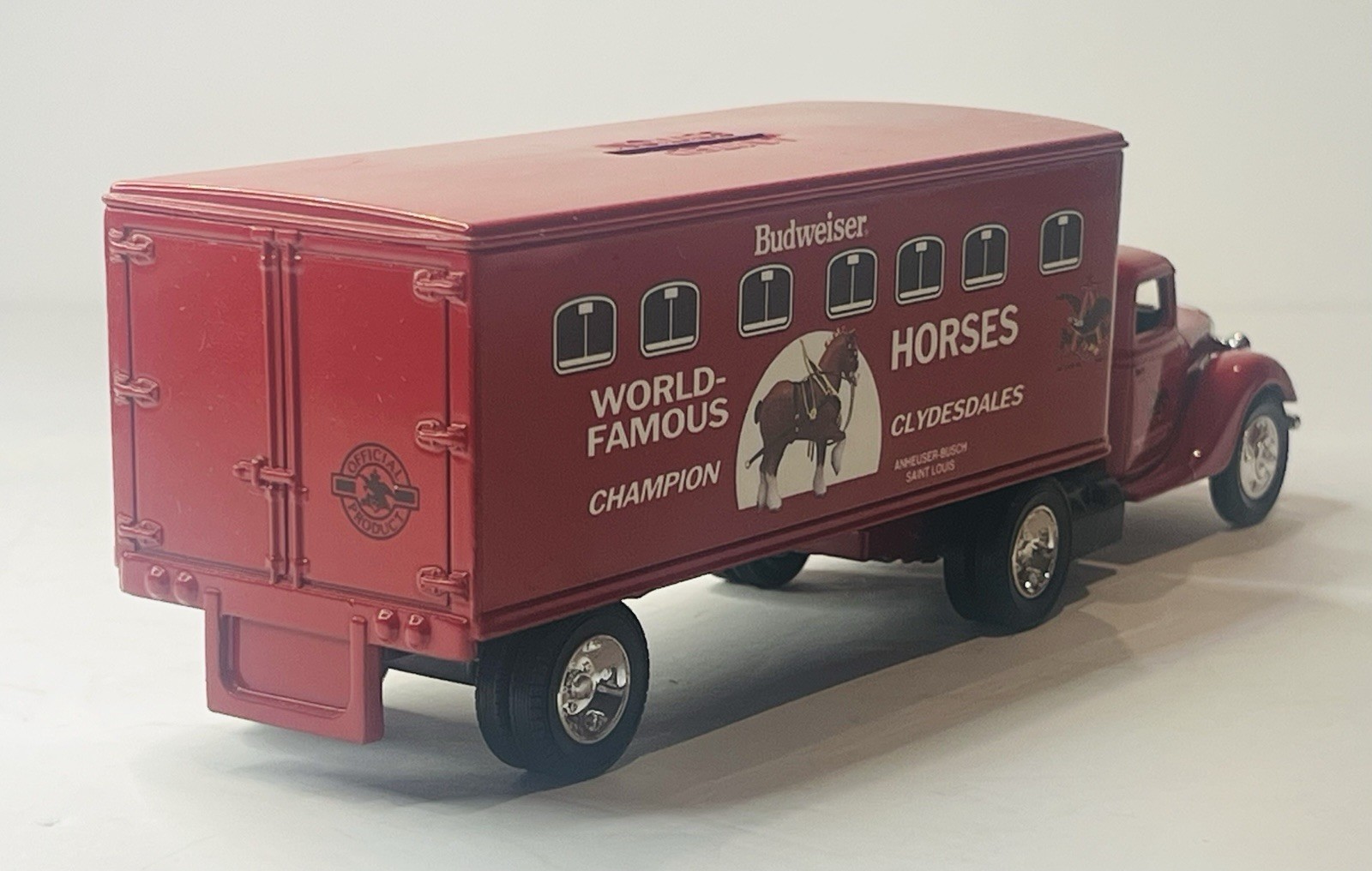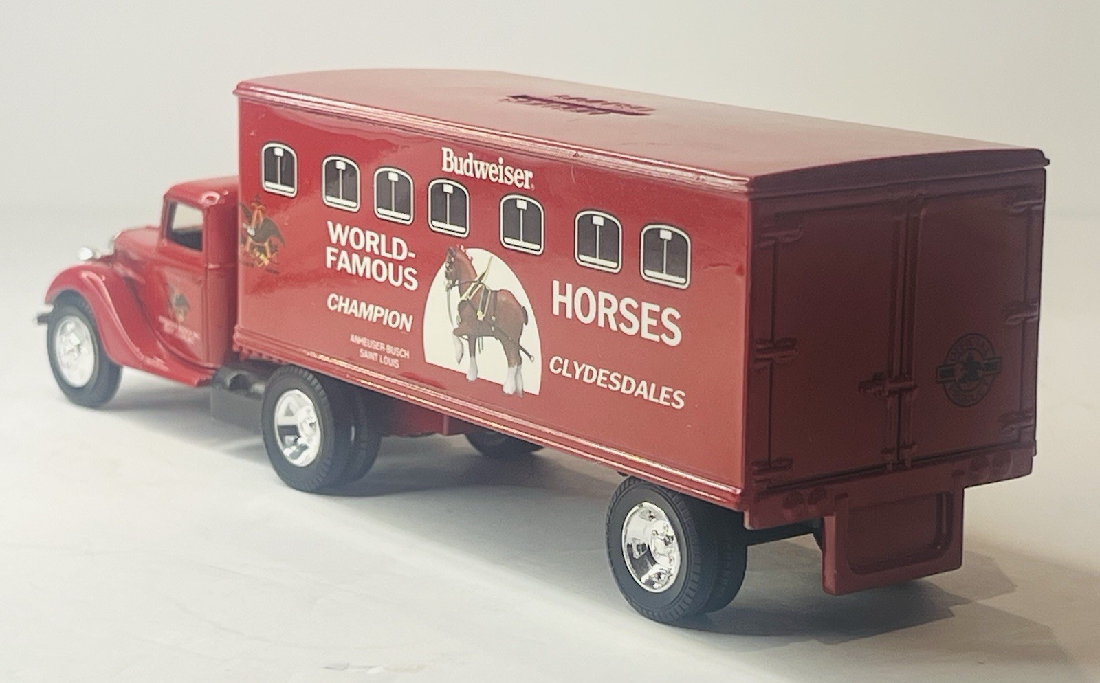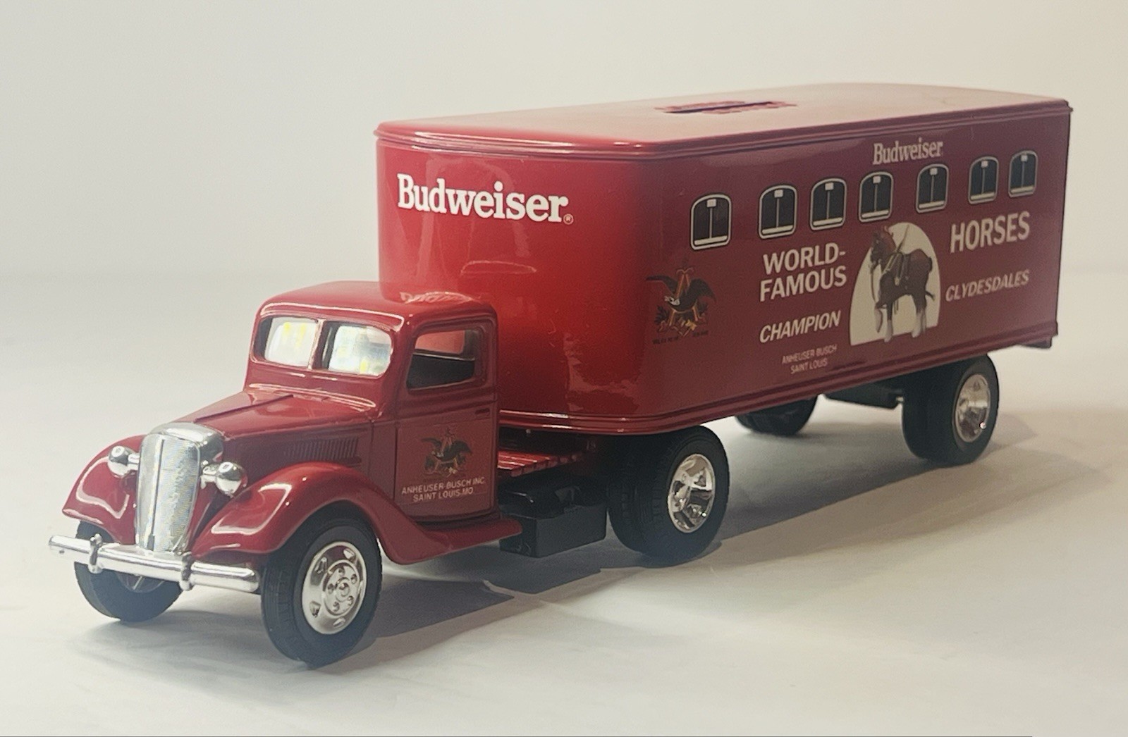 Vtg ERTL Budweiser World Famous Horses 1941 Ford Transport Tractor Trailer Bank