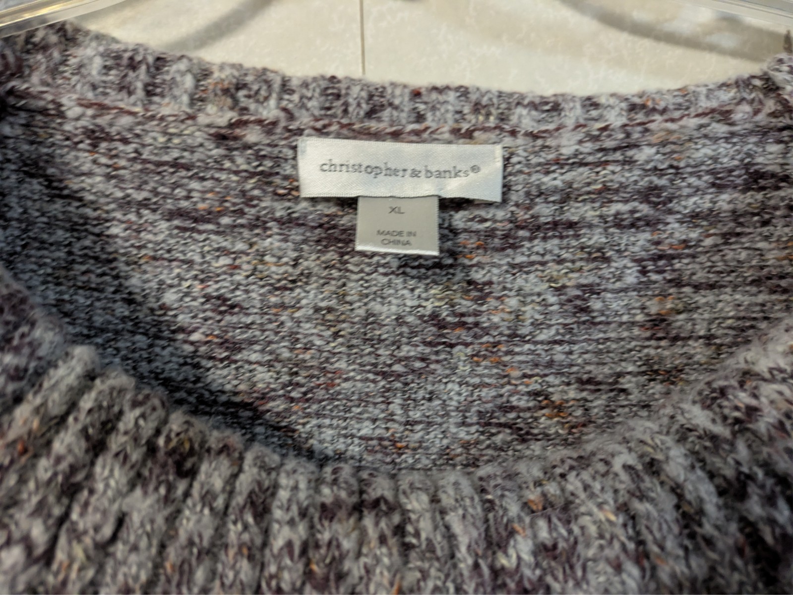 Christopher Banks Women's XL LS Cozy Cowl Neck Sweater Gray Purple Tunic