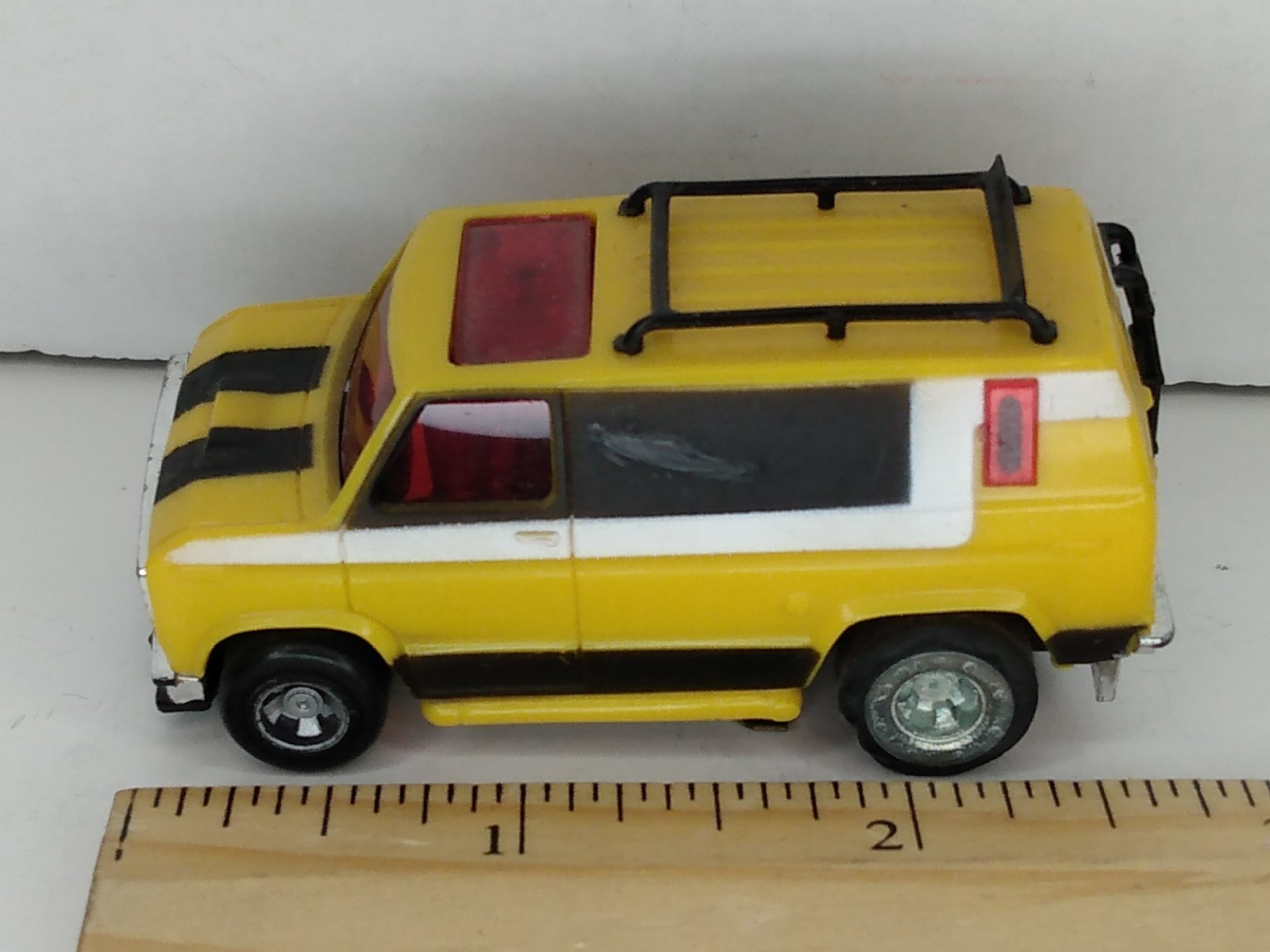 как выглядит 1977 Ideal - Slot Car -Chevy Custom Van w/ ladder Yellow Black-Working-Untested фото