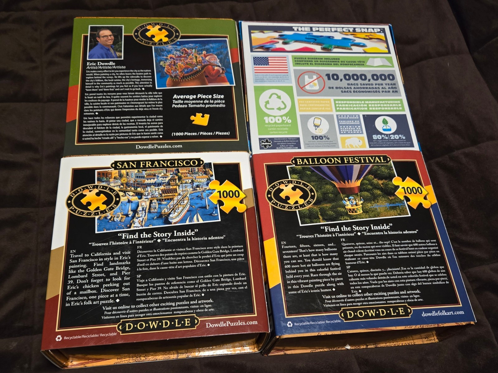 Lot Of 4 Dowdle Jigsaw Puzzles 1000 Pc-BOSTON MARKET/SAN FRANSICO/CHRISTMAS DELI