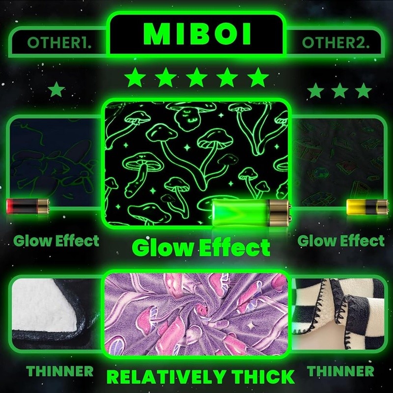 Glow in the Dark Mushroom Blanket Kids Cute Bedroom Decor Cozy Throw Gift New