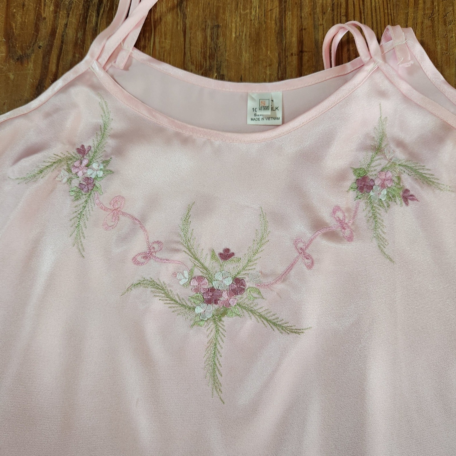 Vintage 100 Silk Womens S Chemise Mini Dress Embroidered Floral Spaghetti Strap