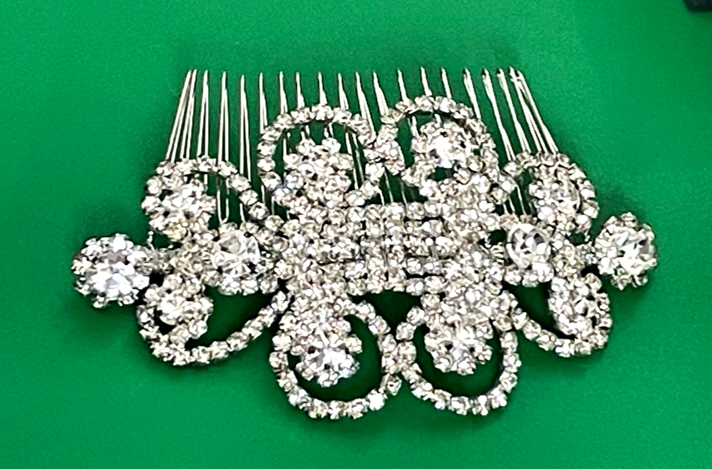 как выглядит Vintage Silver Tone Swirly Crystal Rhinestone Prom Bridal Hair Comb B325 фото