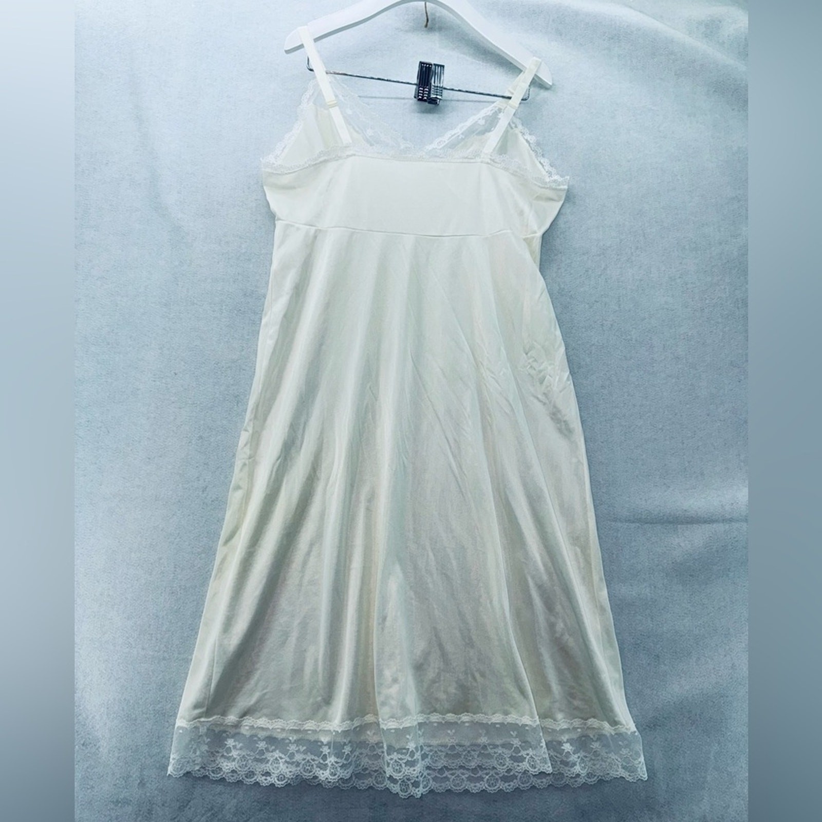 как выглядит EUC Vintage Shadowline Full Slip Ivory size 36 Nylon and Lace Adjustable Straps фото
