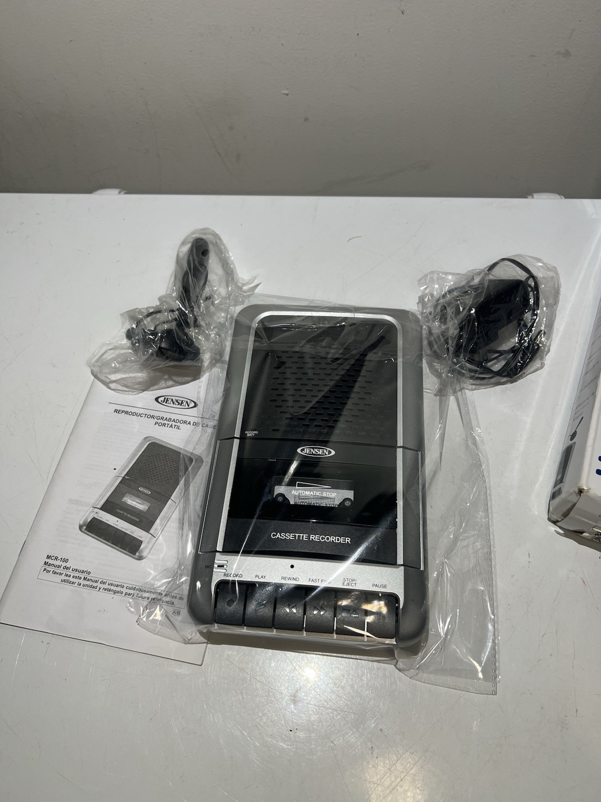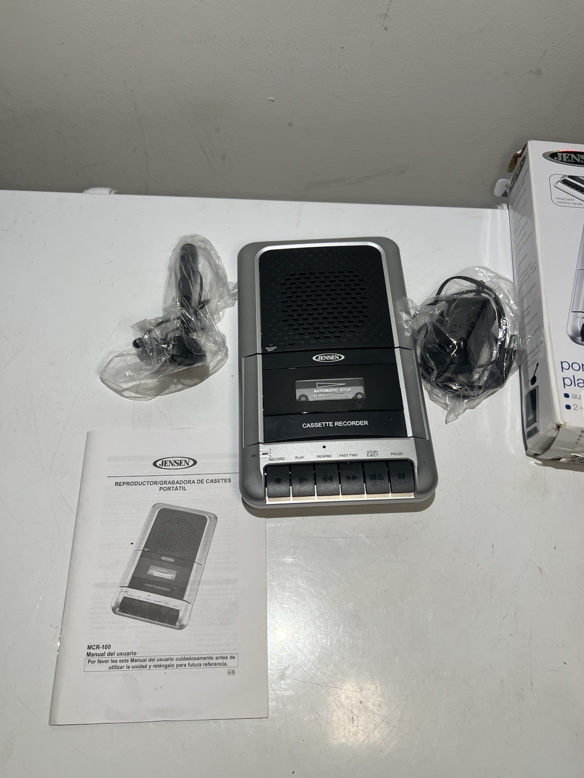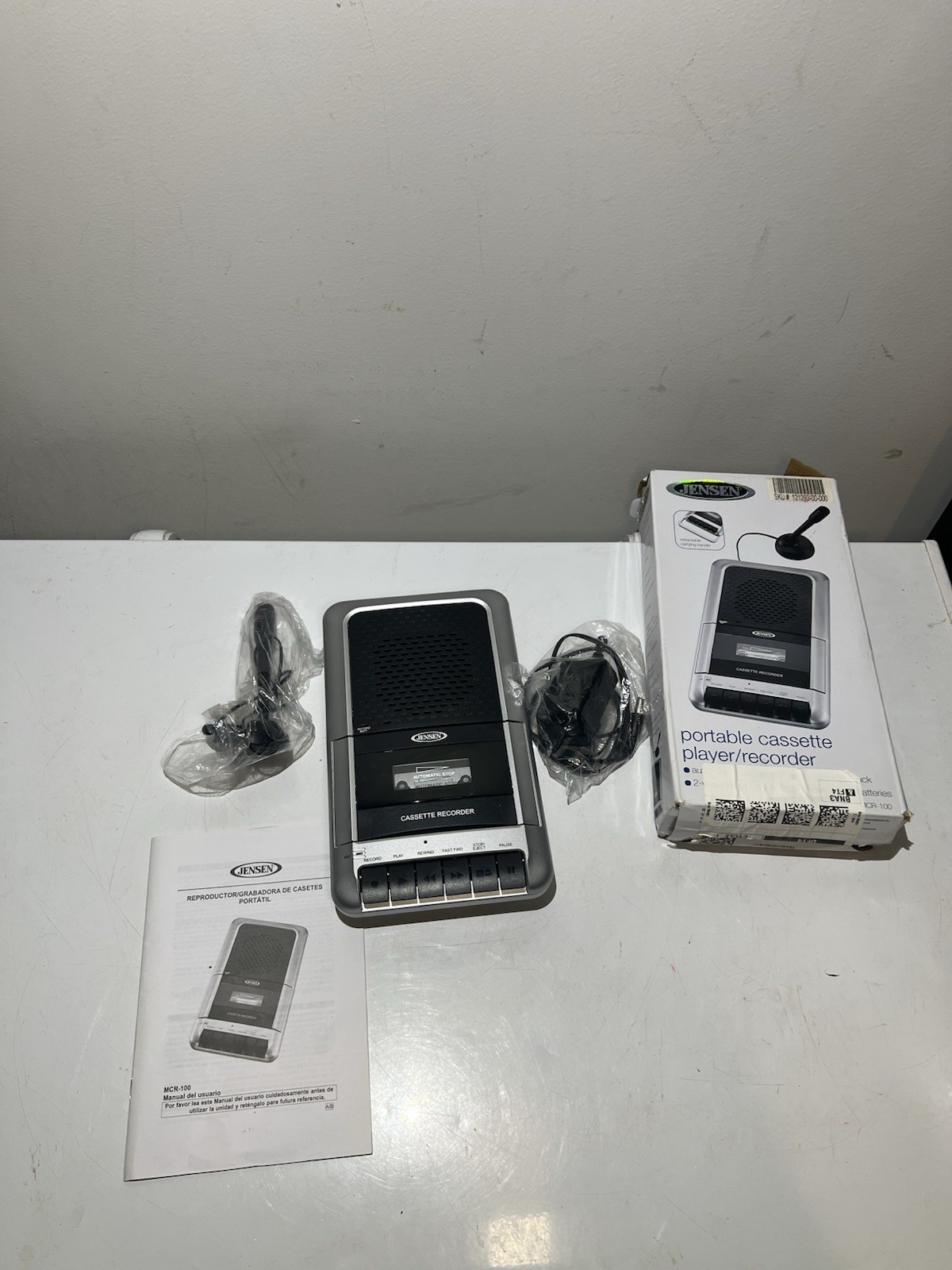 Jensen Cassette Recorder Player with Power MCR-100 Used Tested Works W/ Mic