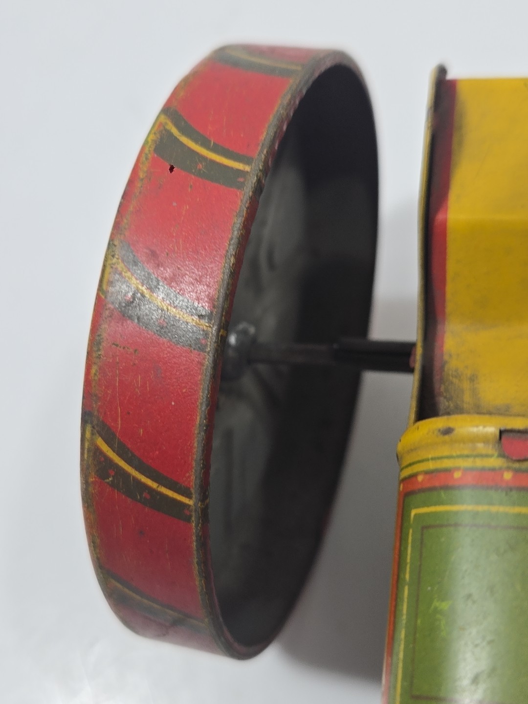 как выглядит VTG-LOUIS MARX-TIN LITHO-AMERICAN TRACTOR-W/DRIVER 2 ATTACHMENTS-NEEDS REPAIR фото