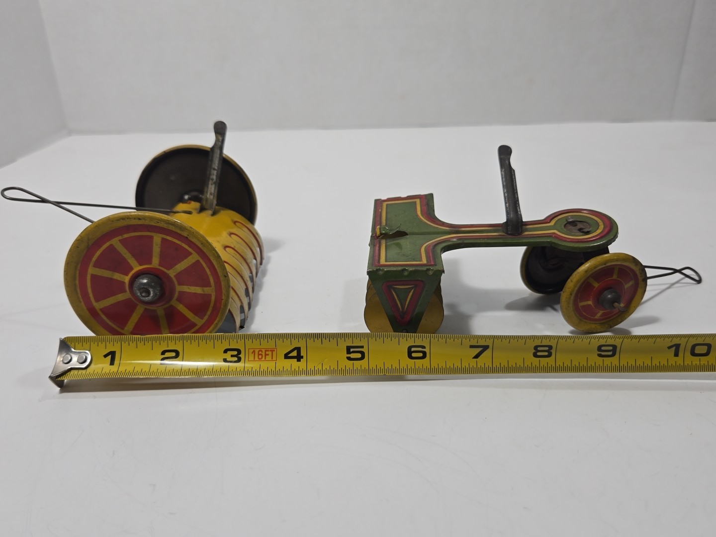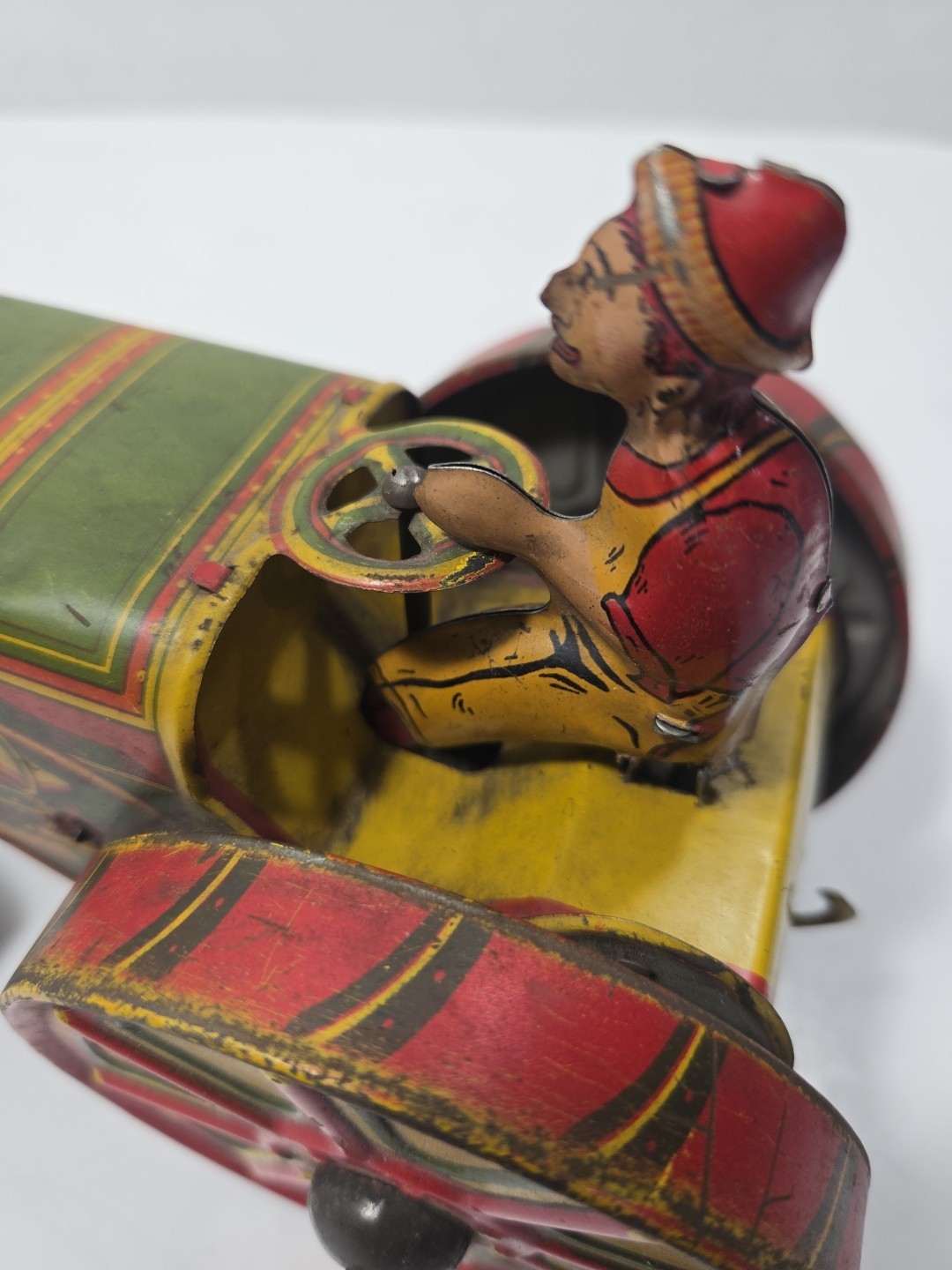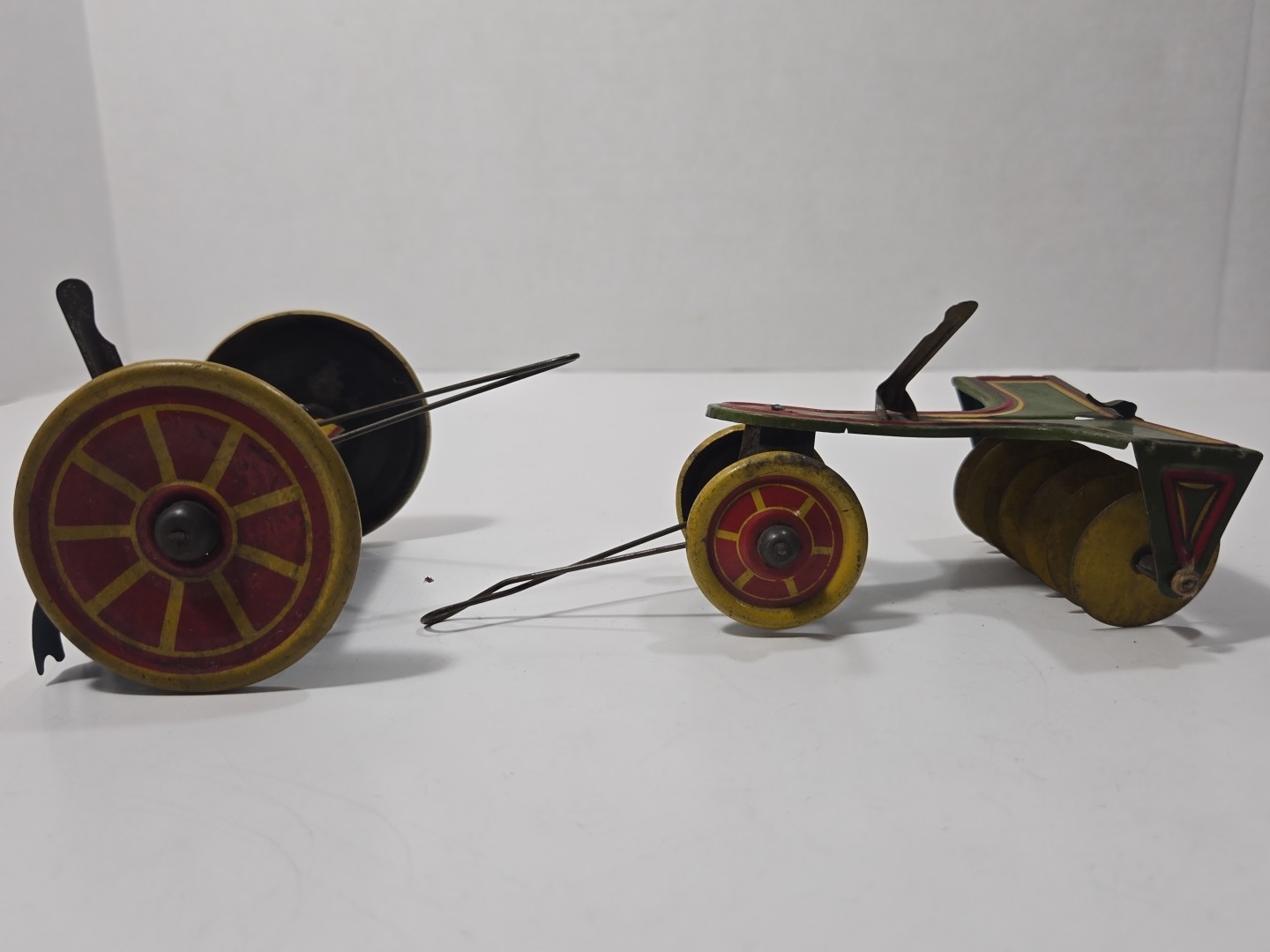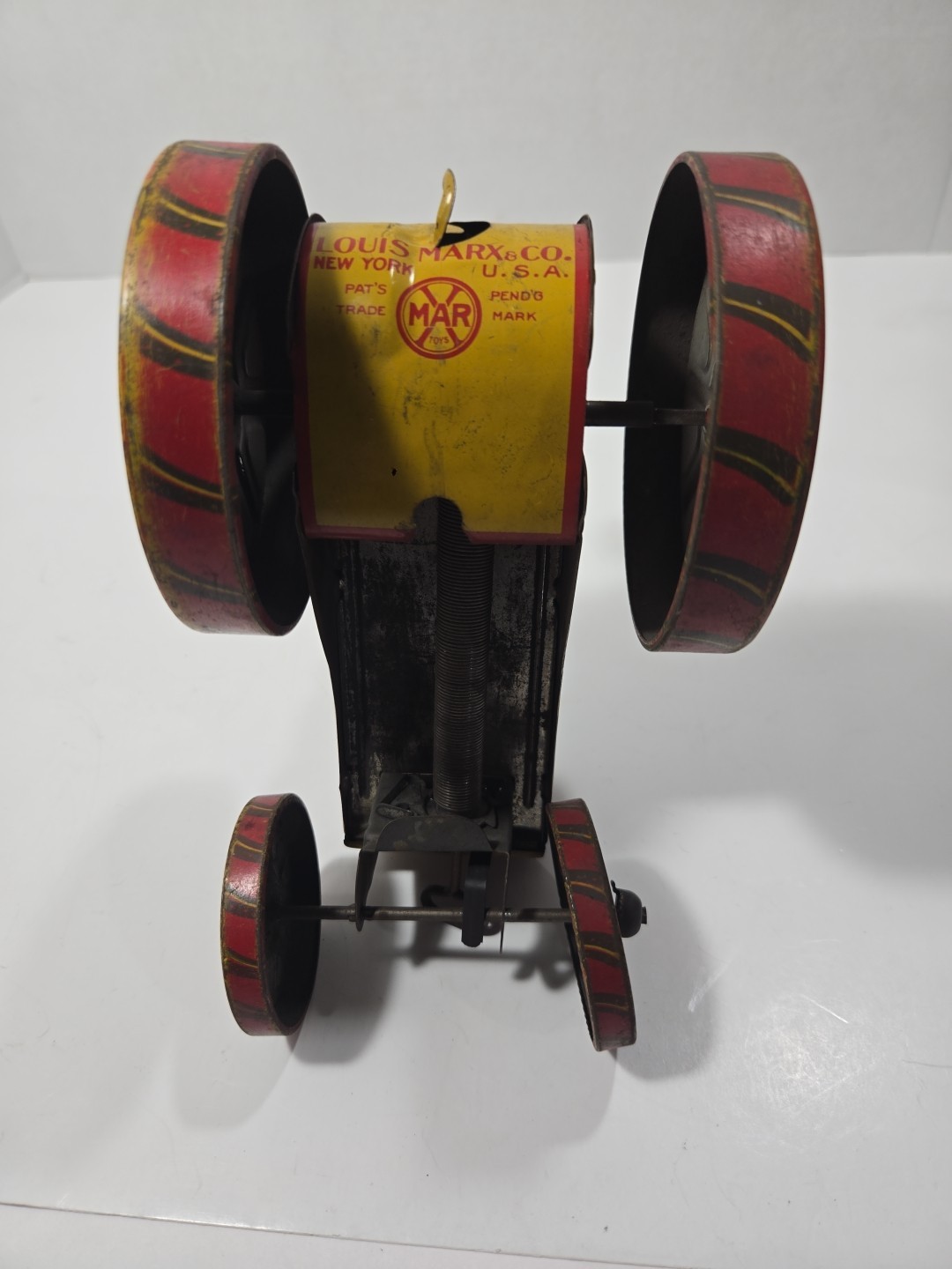 VTG-LOUIS MARX-TIN LITHO-AMERICAN TRACTOR-W/DRIVER 2 ATTACHMENTS-NEEDS REPAIR