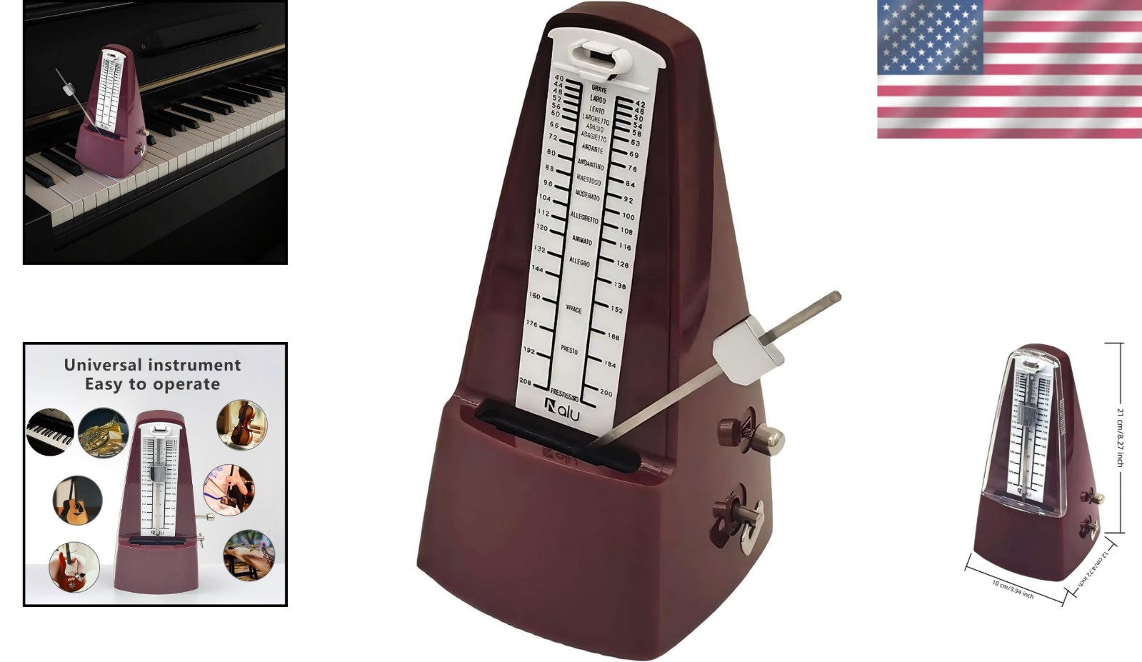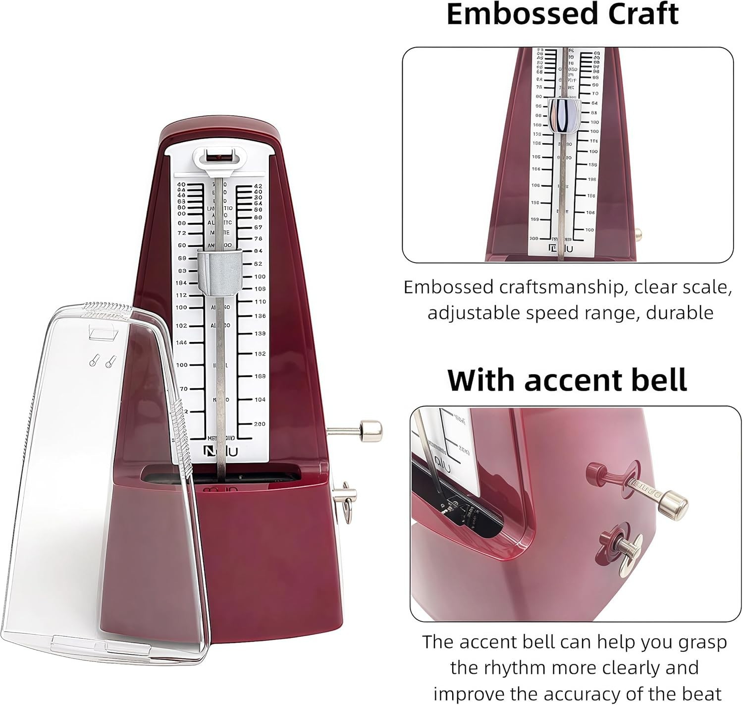 Особенности: Mechanical, Wind-Up, Bell, Adjustable Tempo, Dust Cover, Durable, Eco-Friendly, Precision Metal Movement