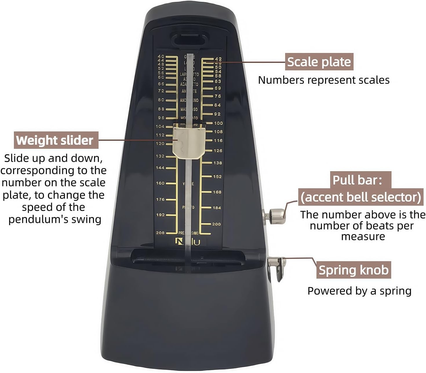 как выглядит N-Black Classic Mechanical Wind-Up Rhythm Metronome with Bell фото