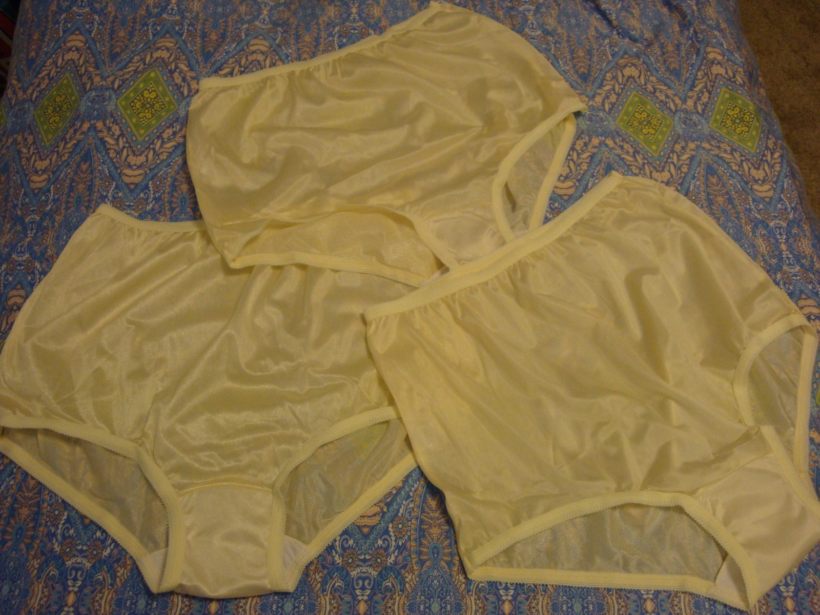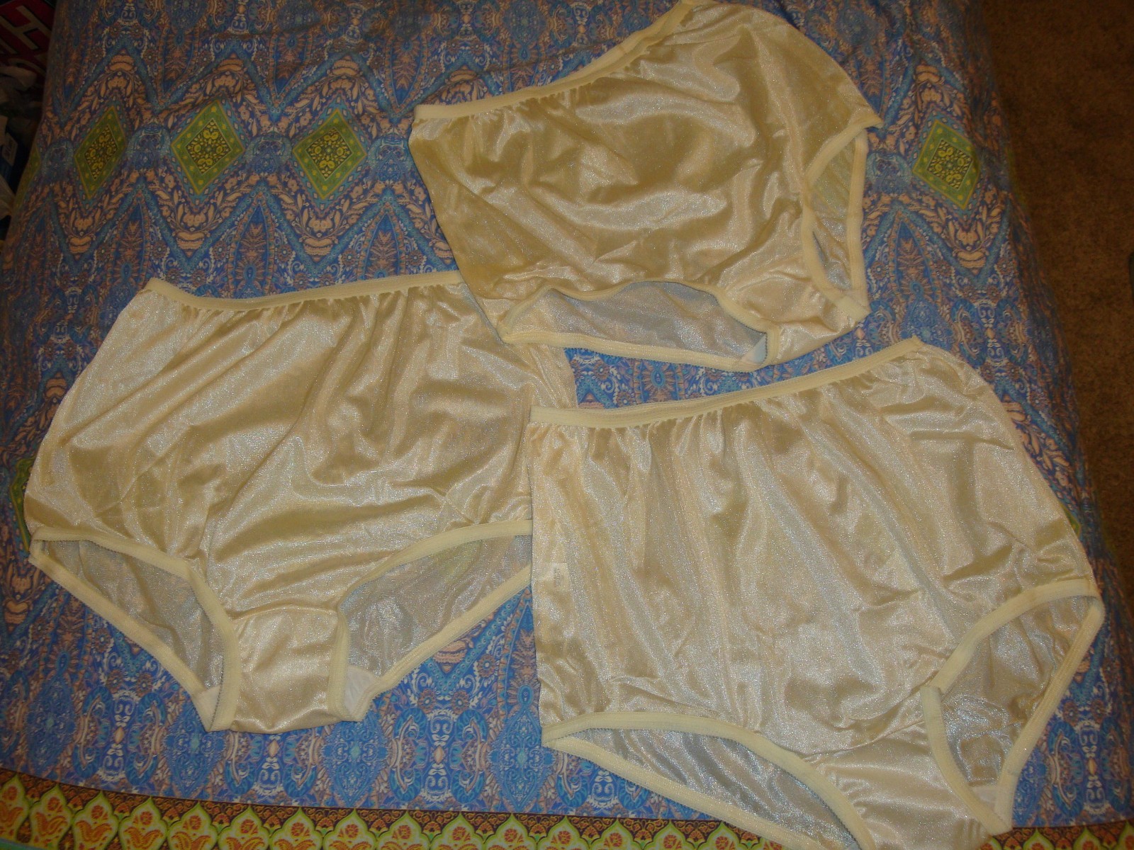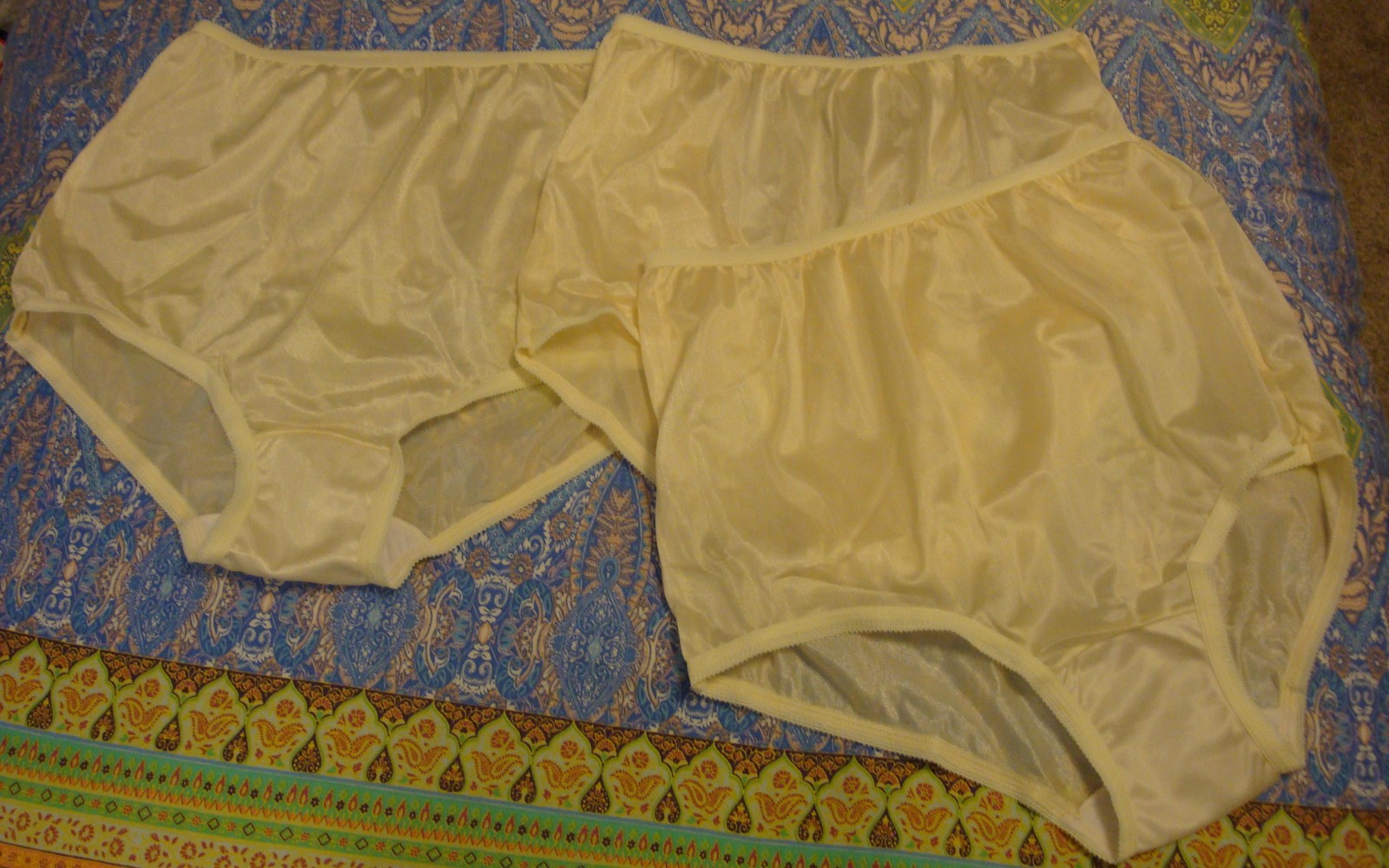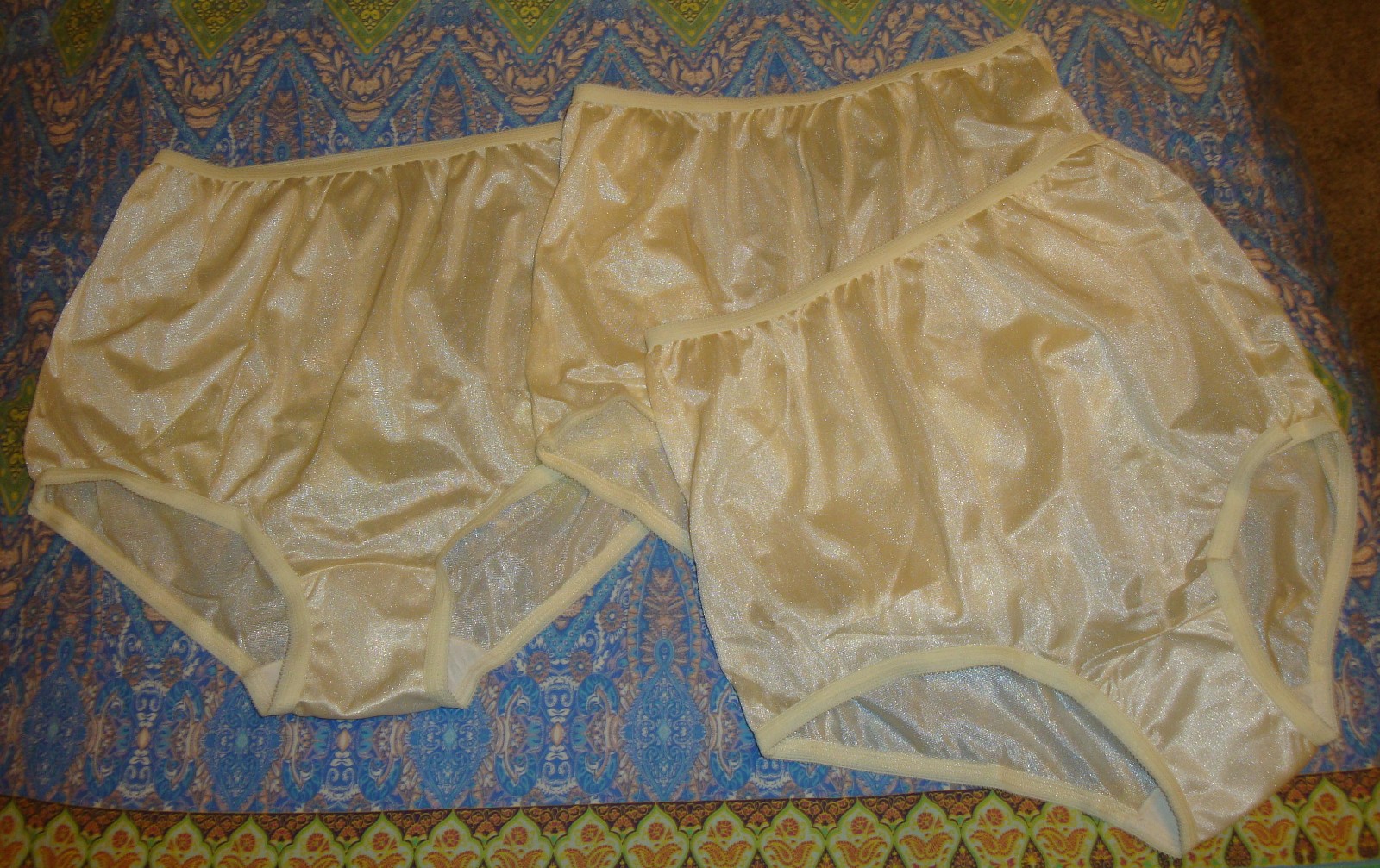 как выглядит Lot of 3 Size 10 Carole Vintage 100 Nylon Shimmery Cream Color Brief Panty фото