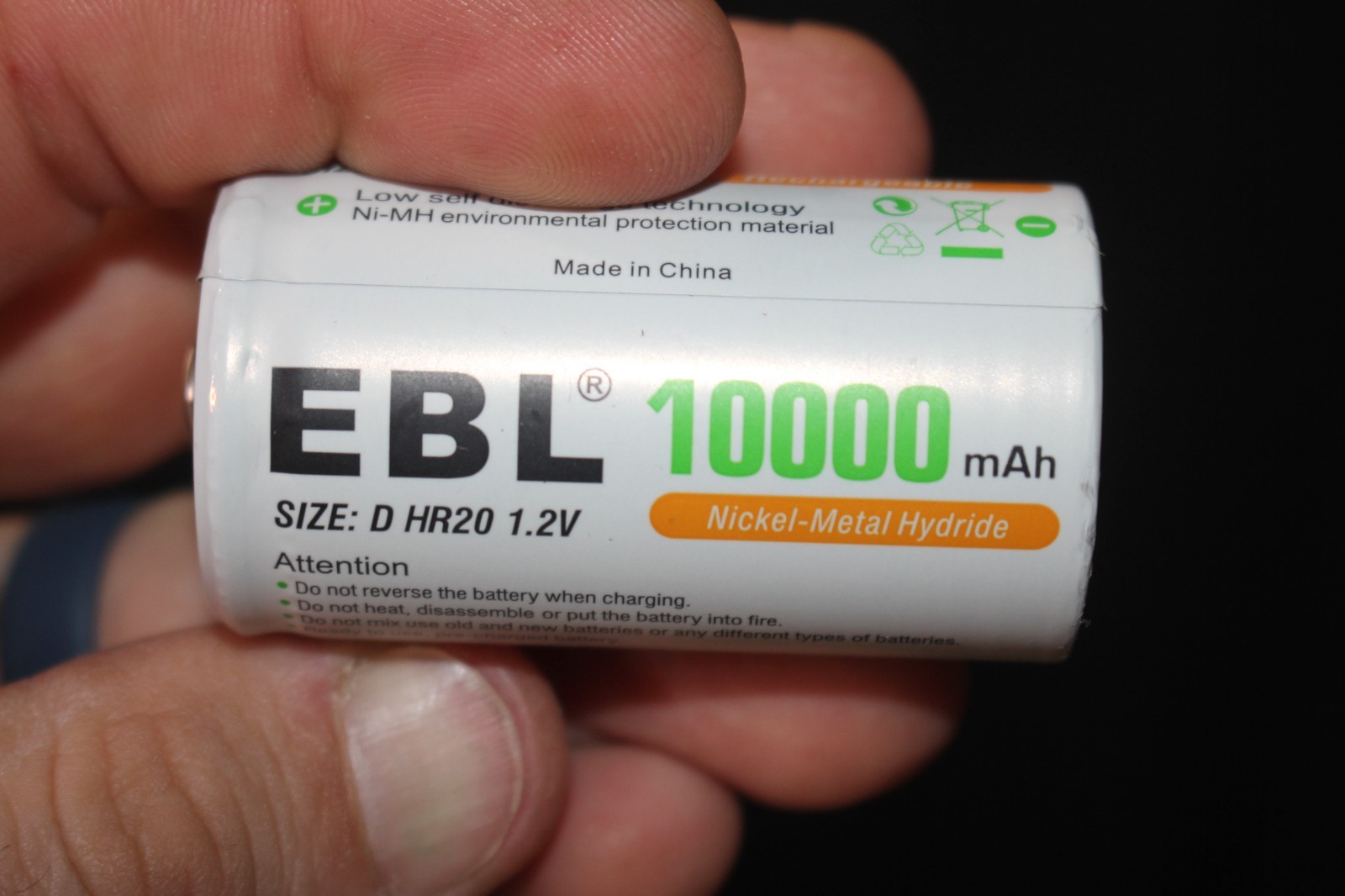 как выглядит EBL D Cell Rechargeable Batteries LOT OF 4 10000 mAh HR20 1.2V WORKING фото