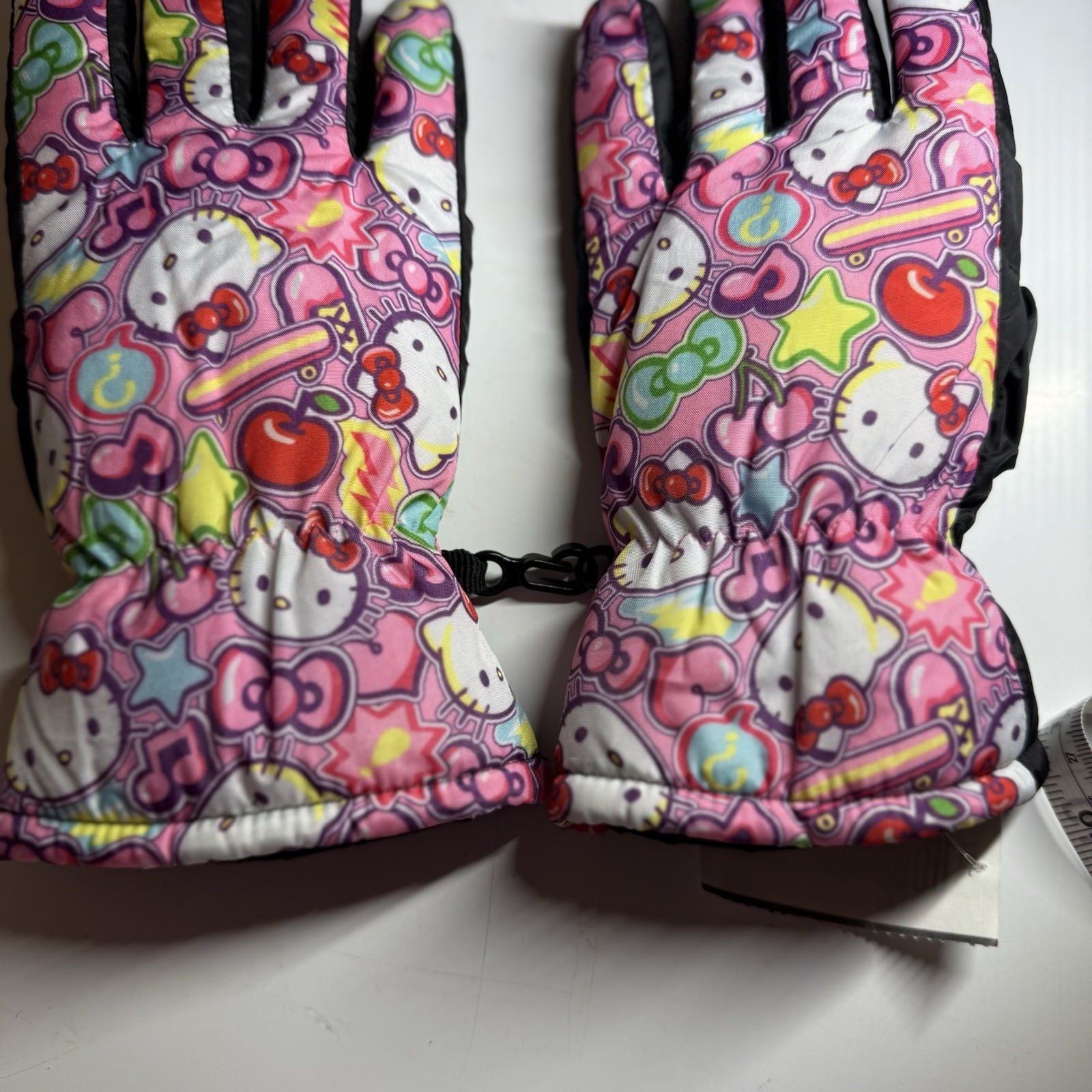 как выглядит Hello Kitty By Sanrio Girls Snow Gloves Size Small/Medium Pink Black фото