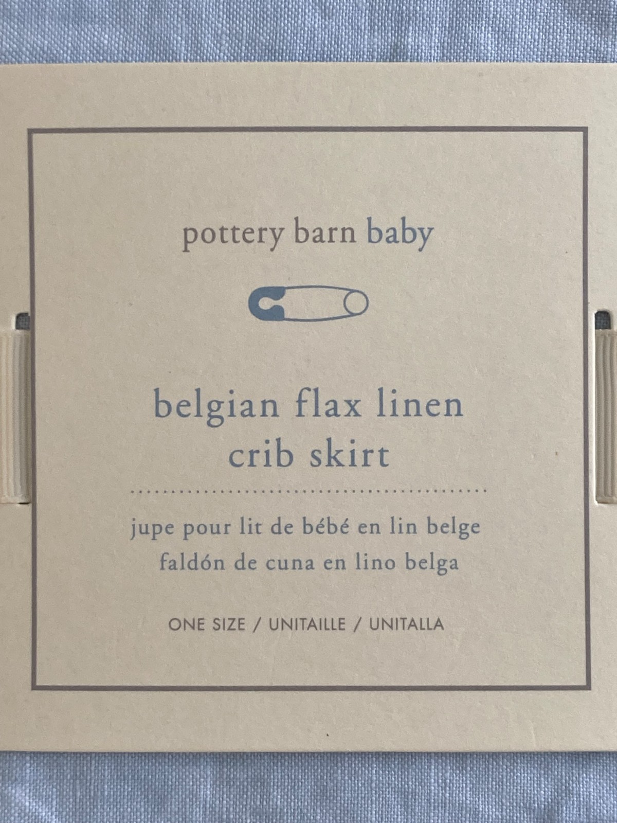 NWT Pottery Barn Baby Belgian Flax Linen Light Blue Crib Skirt