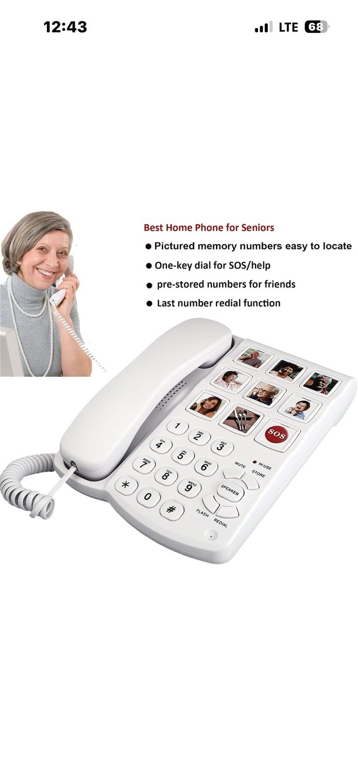 New In Box Big Button Landline Telephone Photo Memory Corded Phone for Seniors