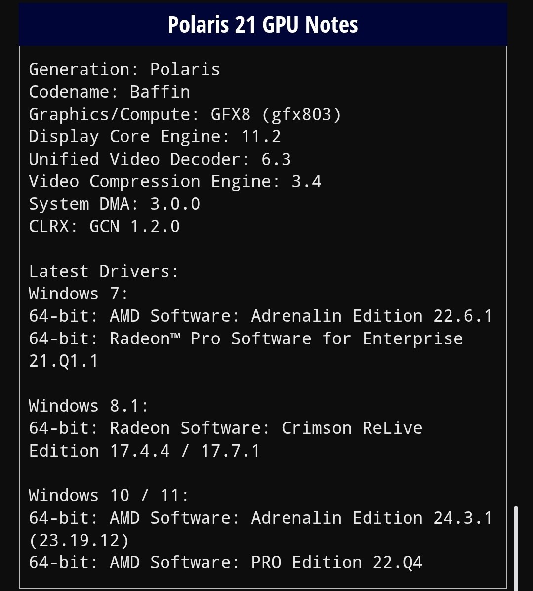 APIs: OpenGL 4.6, OpenCL 2.1, DirectX 12