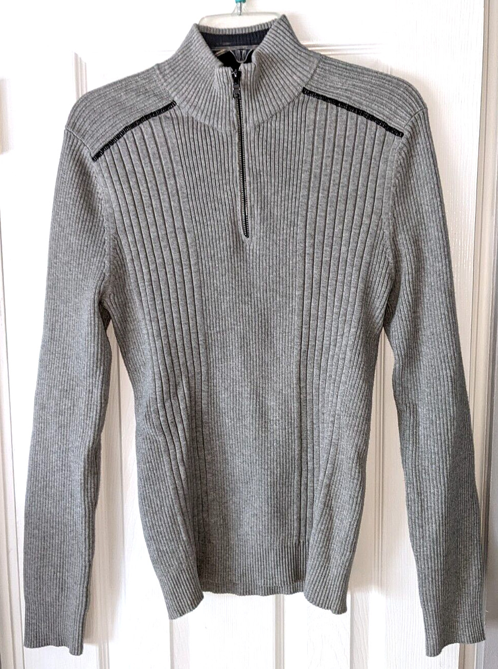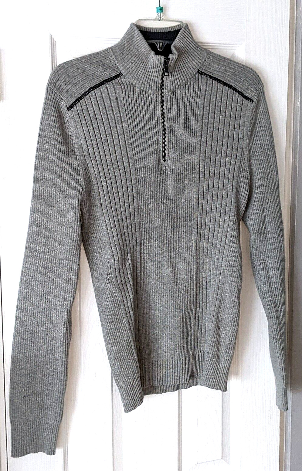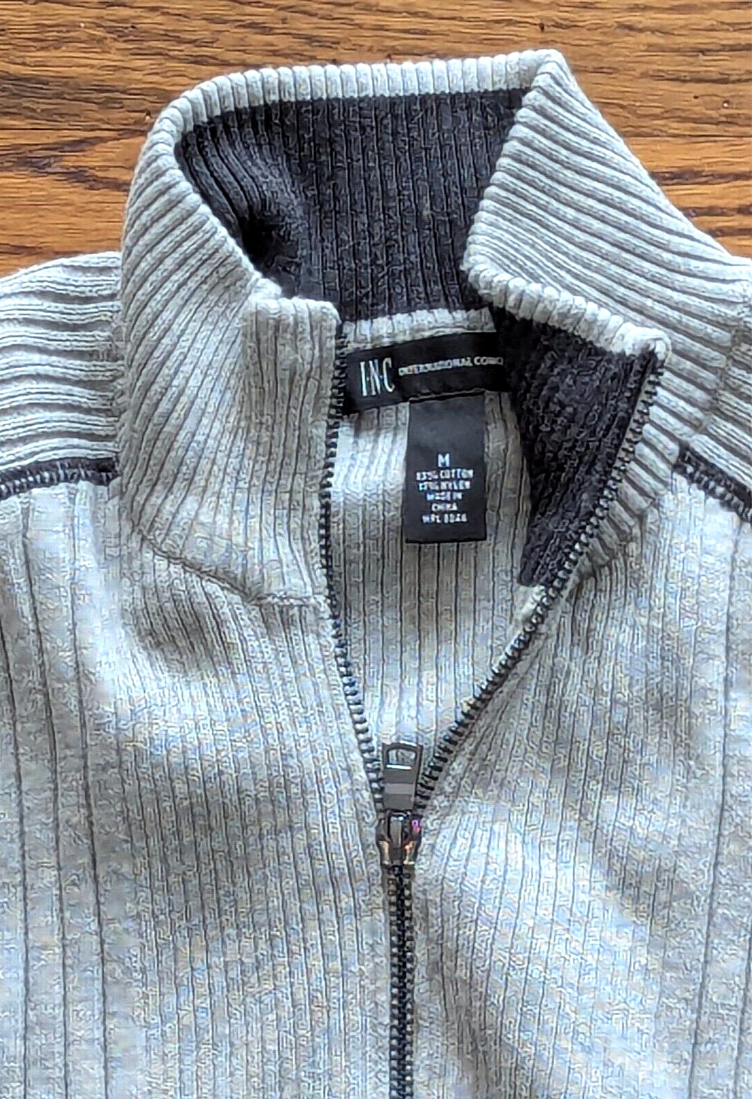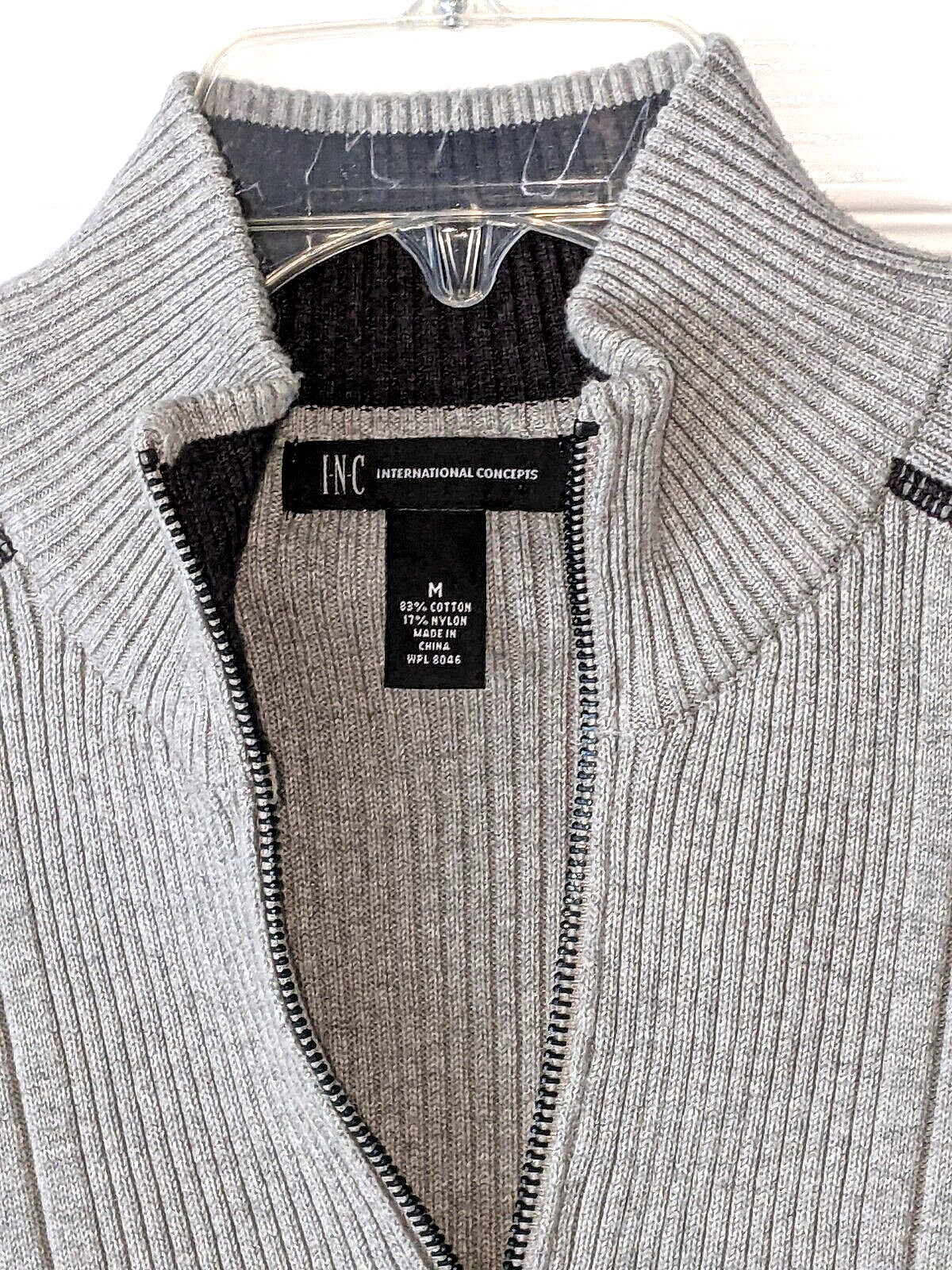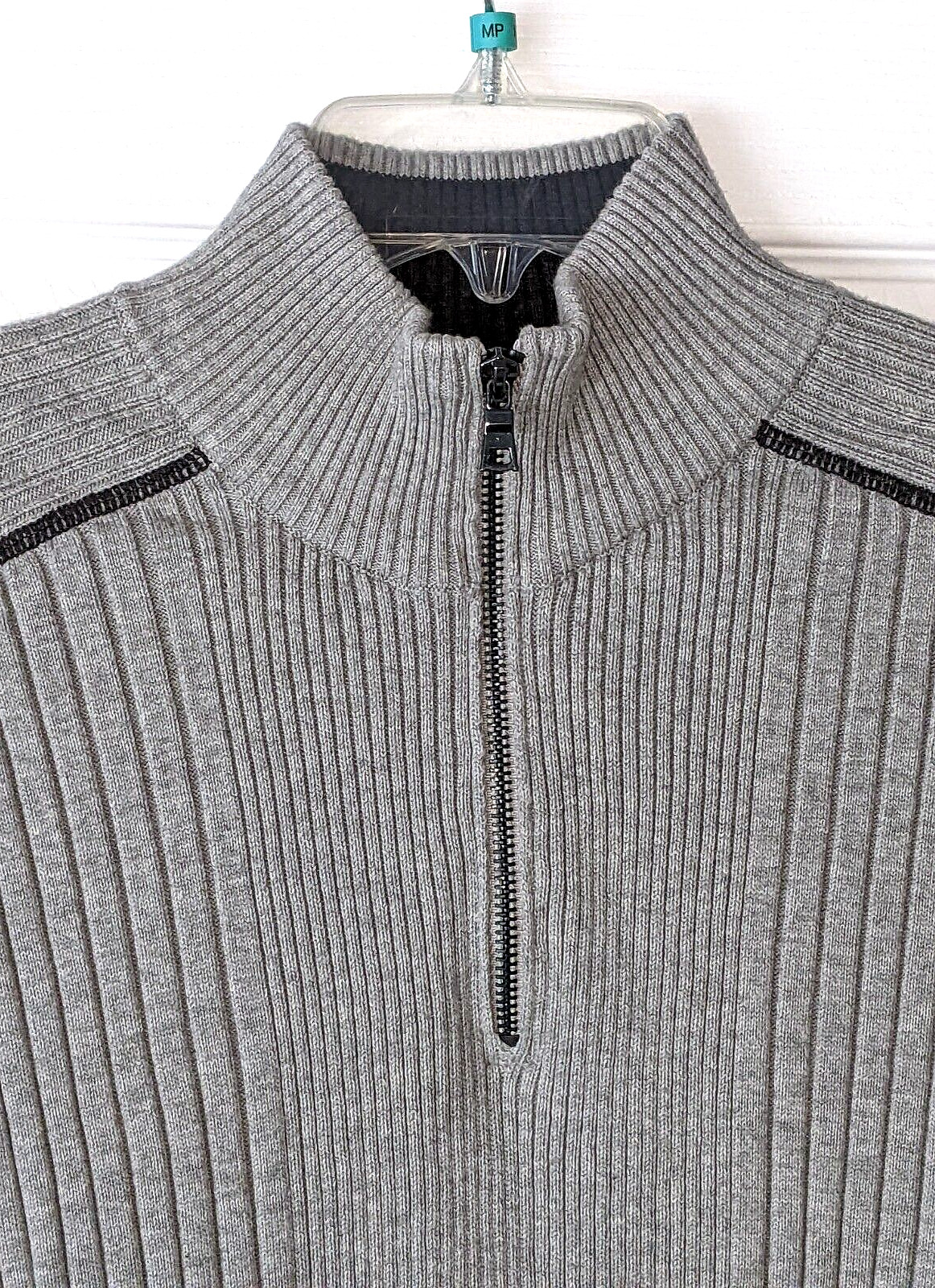 INC Mens Gray Sweater Black Accents Pullover Mock Neck Zip Int'l Concept Medium