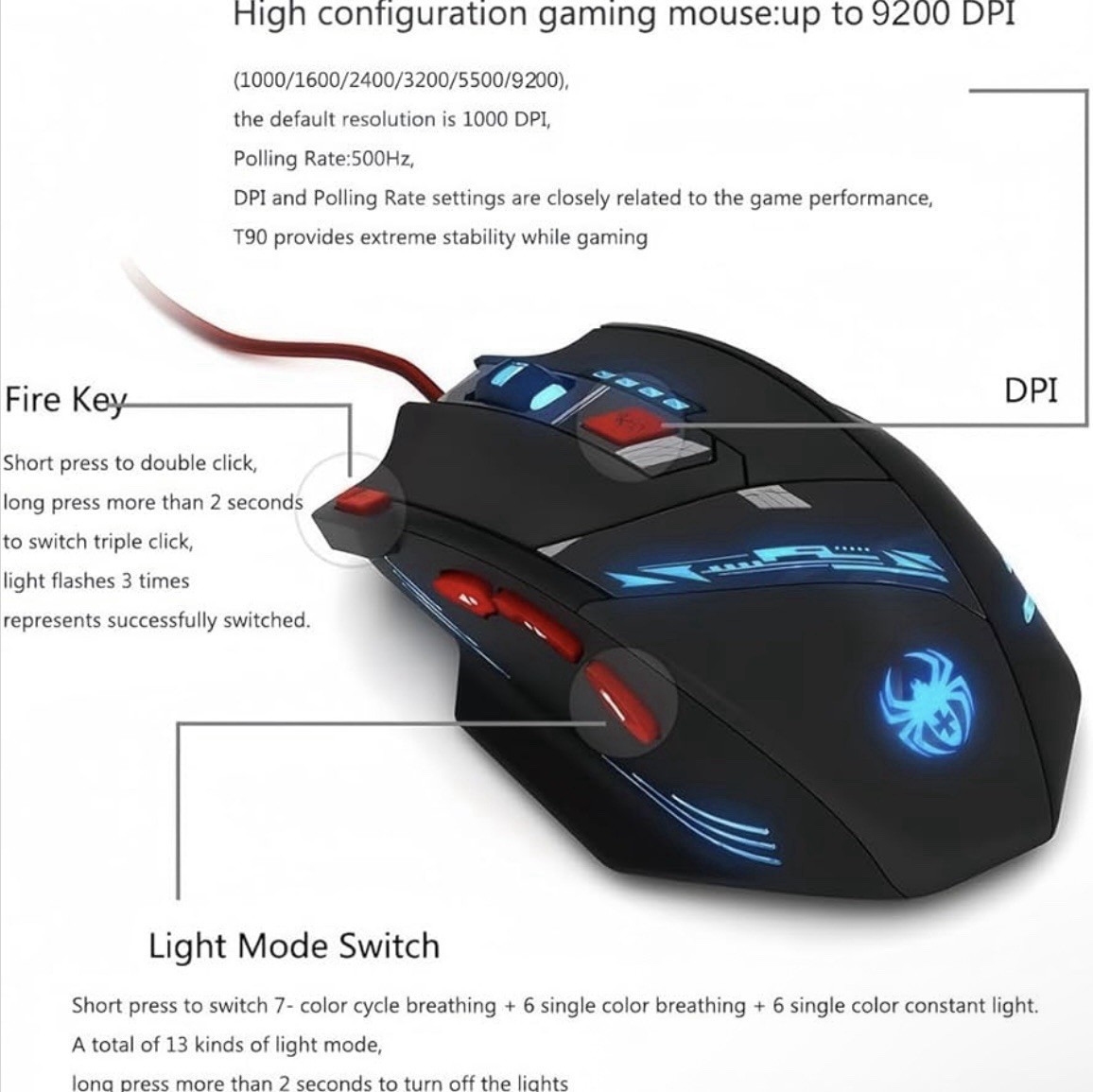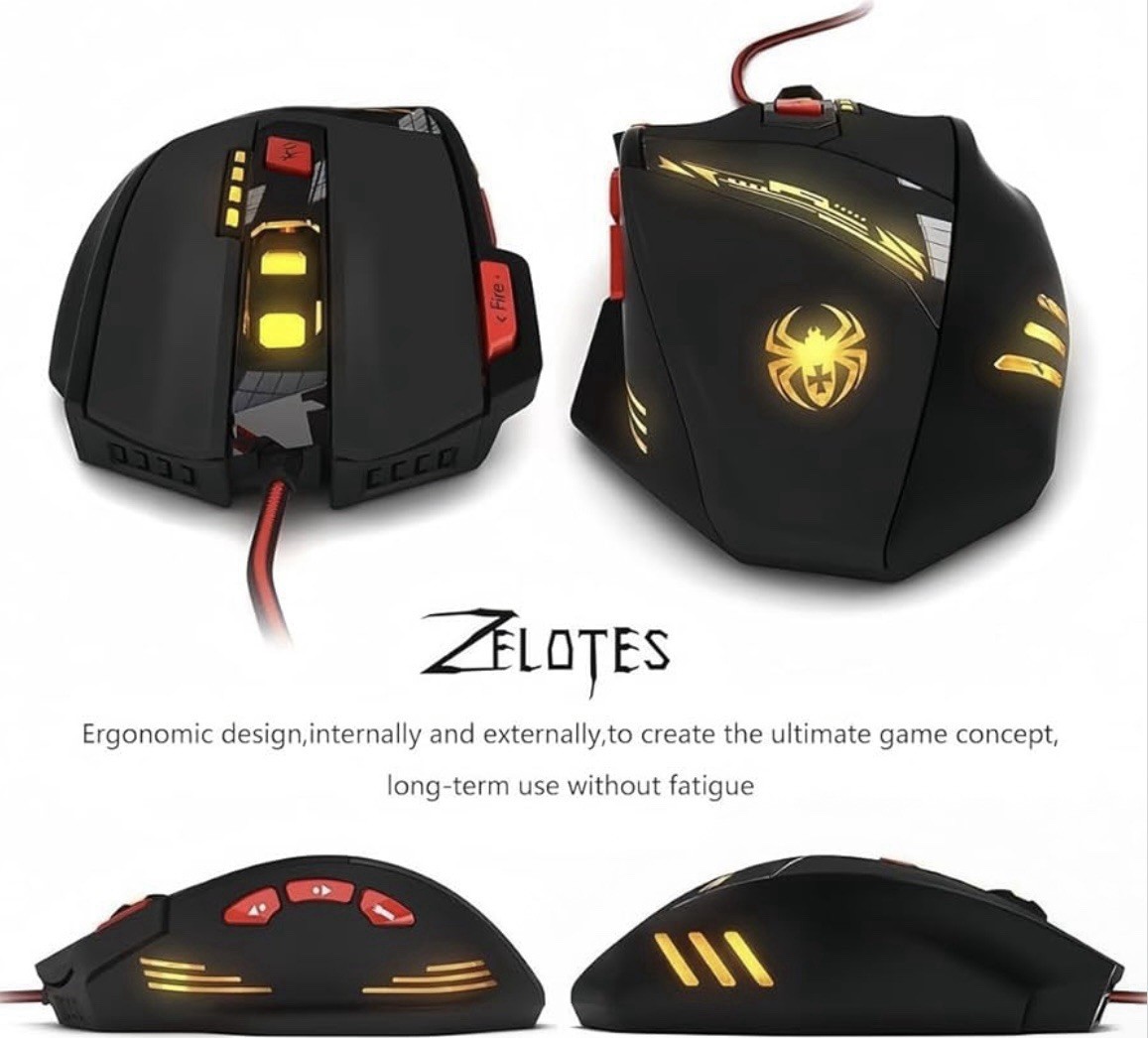 Zelotes T-90 Gaming Mouse 9200 DPI Adjustable Weight LED Wired USB