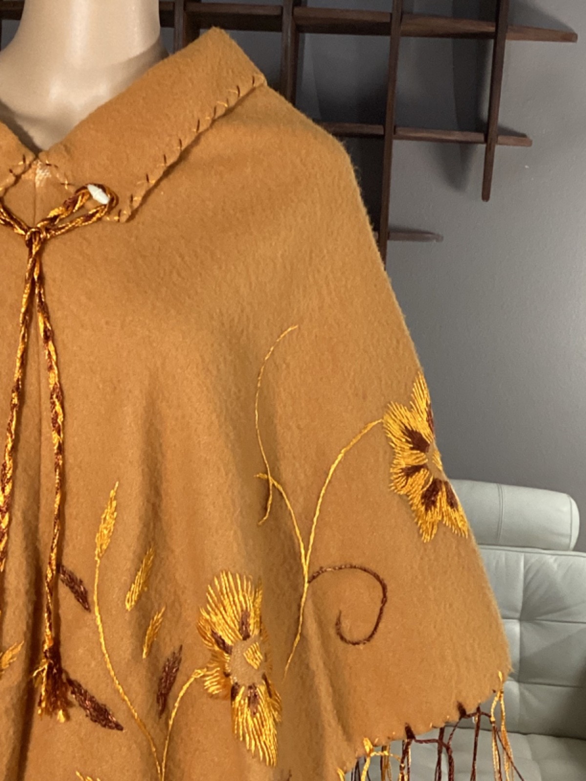 как выглядит Vintage 60s 70s Acrylic Poncho Cape Striped Fringe Hippie Boho фото