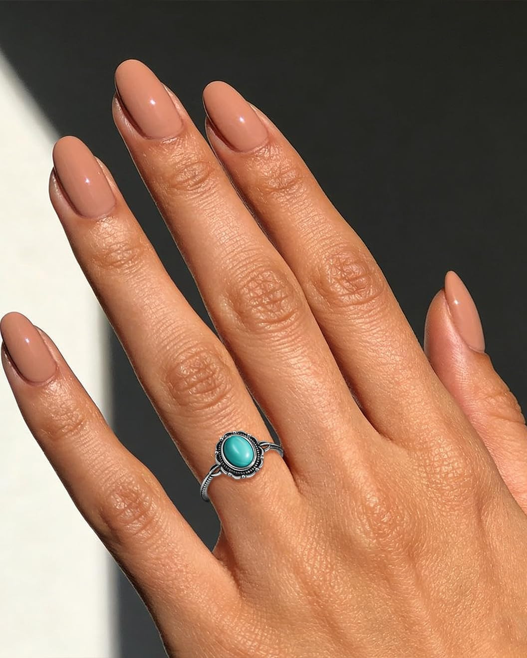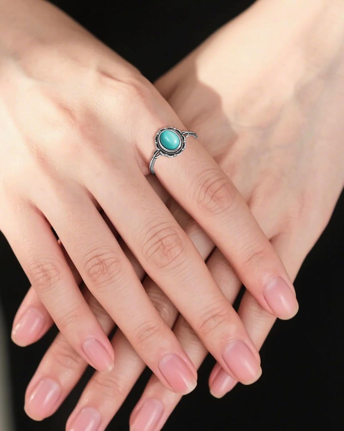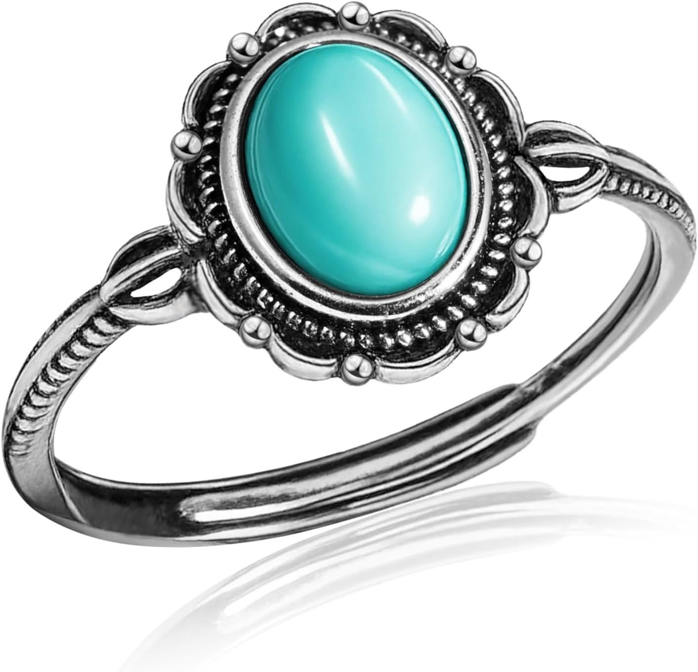 Turquoise Ring for Women, S925 Sterling Silver Boho Ring with Vintage Filigree A