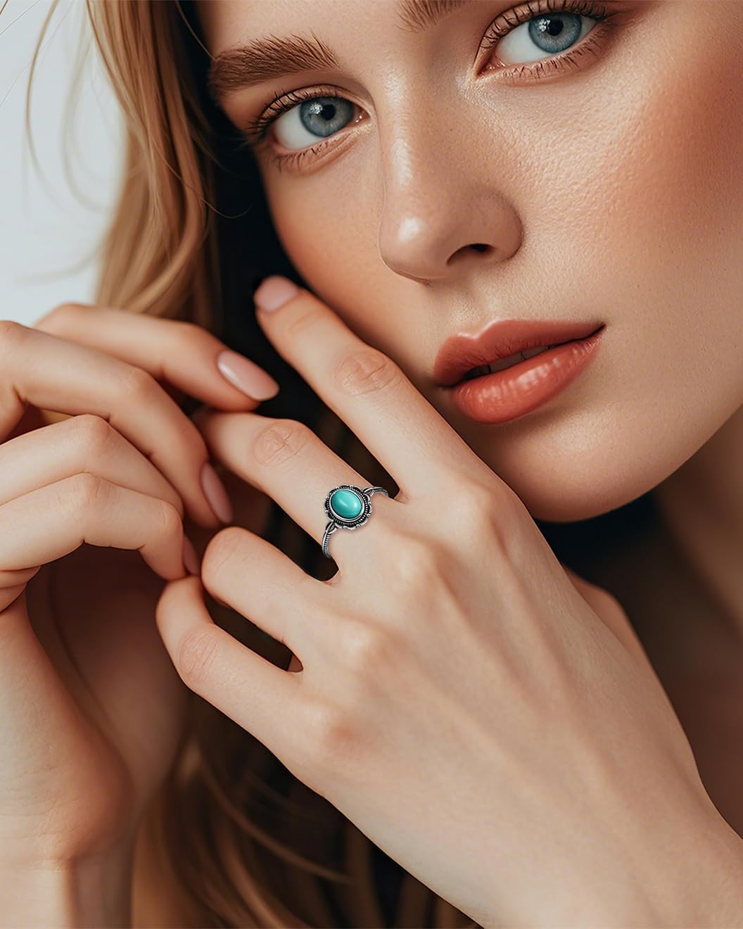 как выглядит Turquoise Ring for Women, S925 Sterling Silver Boho Ring with Vintage Filigree A фото