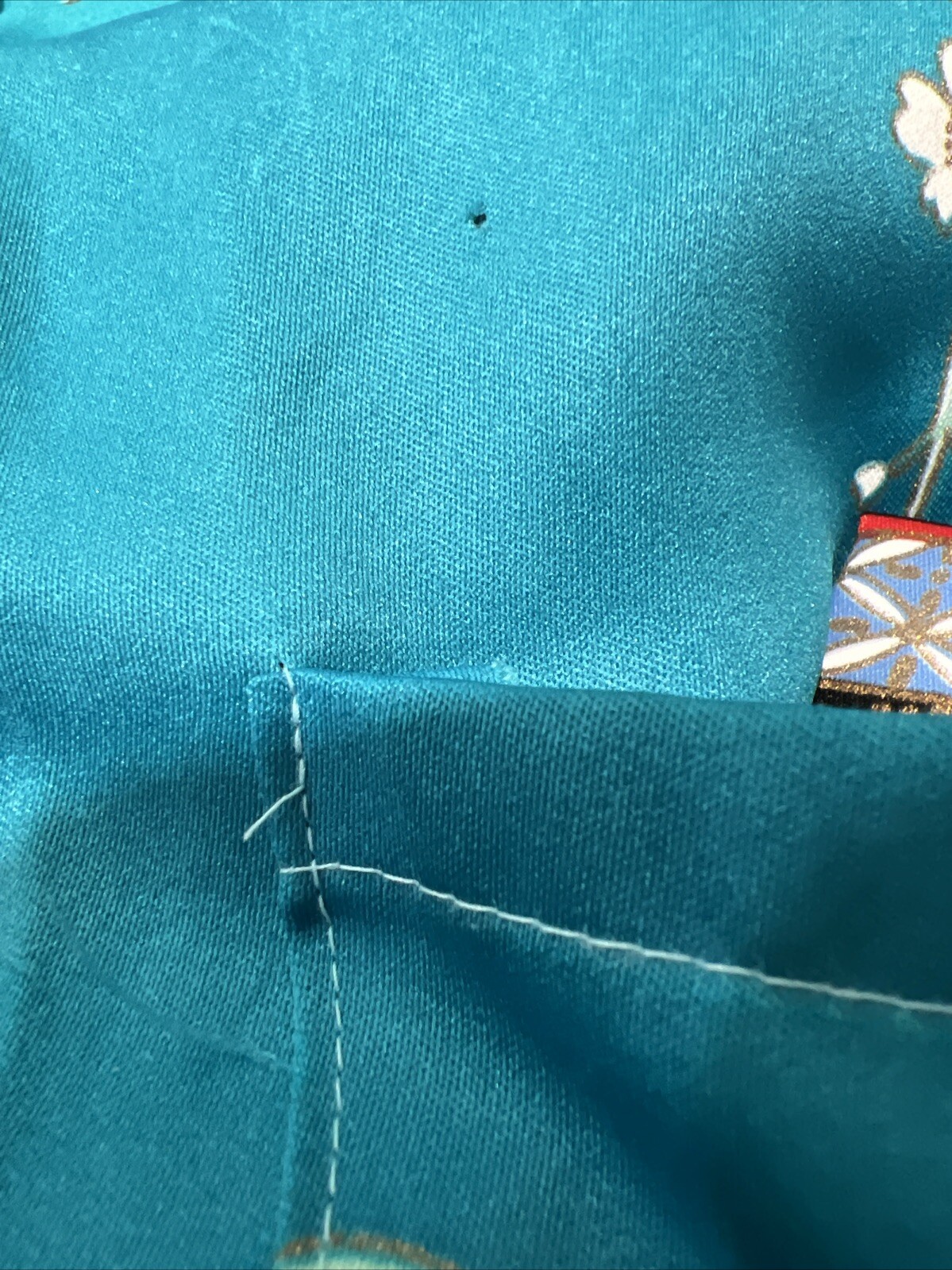 • MARUKY Kyoto Tokyo Kimono Robe Size 35 Teal Tower Floral Blue Mid-Length Tie VTG