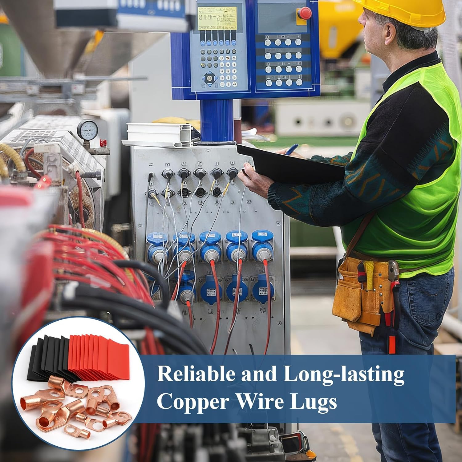 Copper Wire Lugs 130Pcs, AWG 2 4 6 8 10 12 Gauge Battery Cable Ends with 66Pcs H