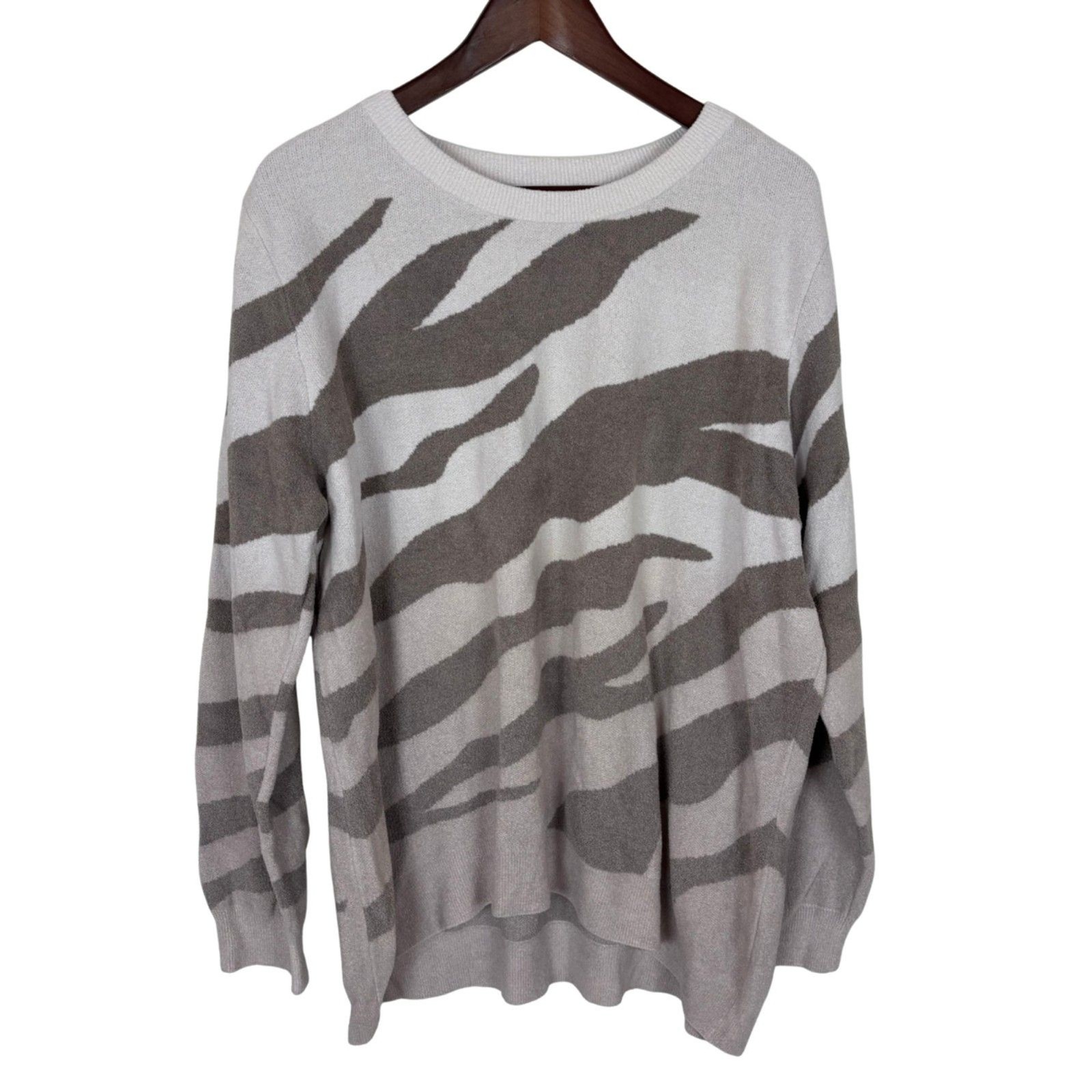 Barefoot Dreams Cozy Chic UltraLite Brown Cream Animal Print Sweater Women s 1X
