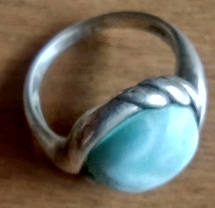как выглядит Vintage Real Larimar Cabochon NK 925 Sterling Silver Ring Sz 7 фото