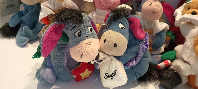 как выглядит 8 Disney Store Bean Bag Lot Santa Pooh Eeyore w/Star Set Sugarplum Eeyore Choir фото