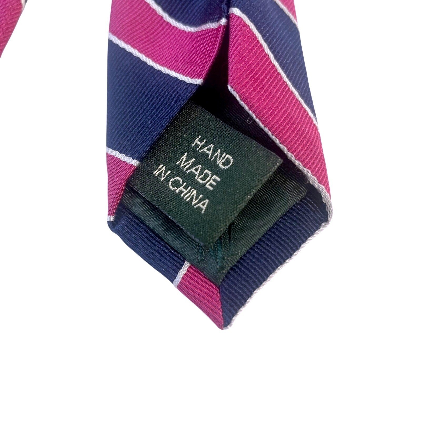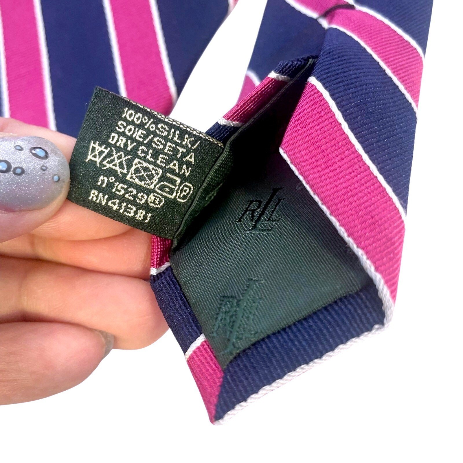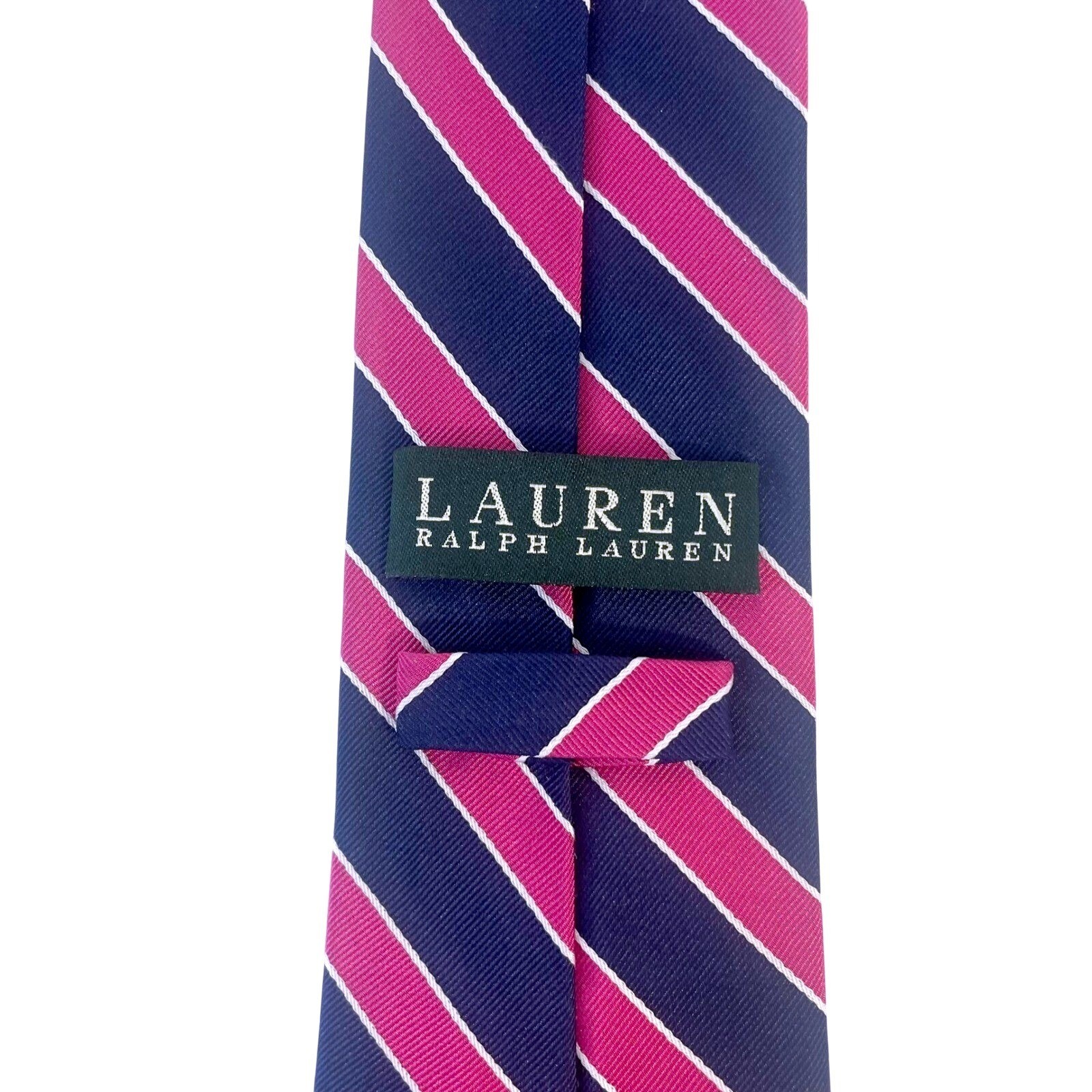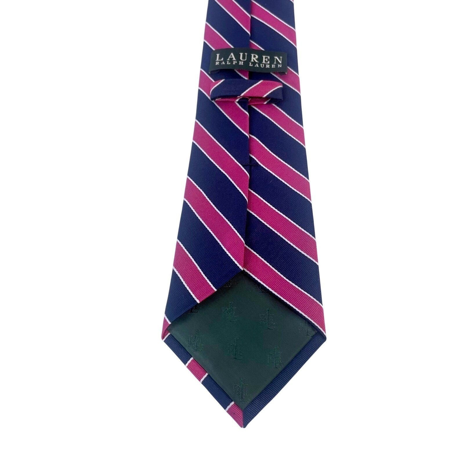 Lauren Ralph Lauren Silk Repp Tie Stripe Navy Pink White Hand Made