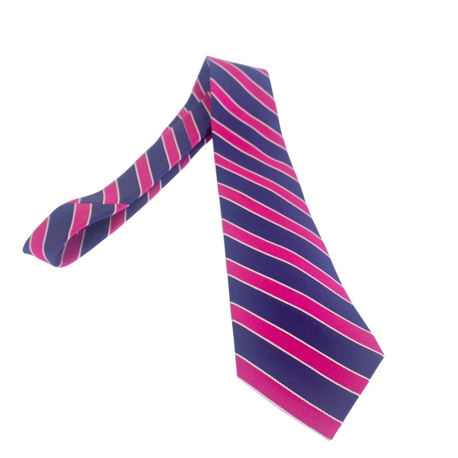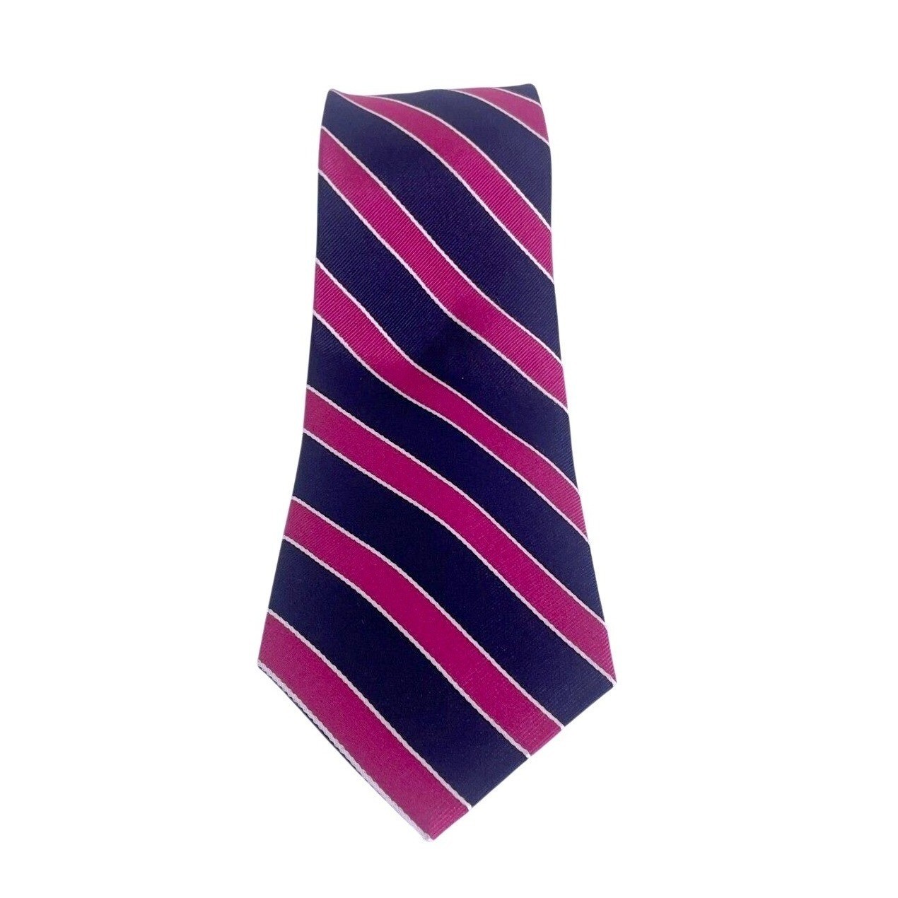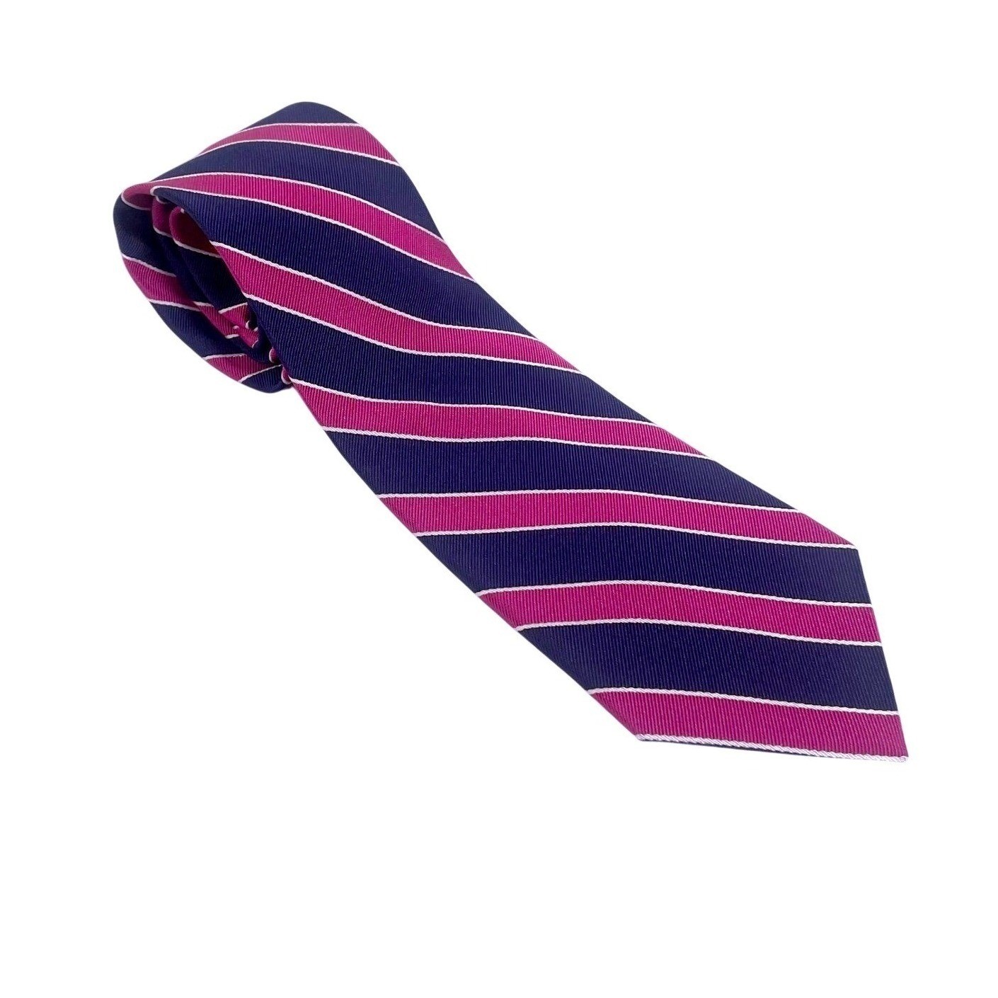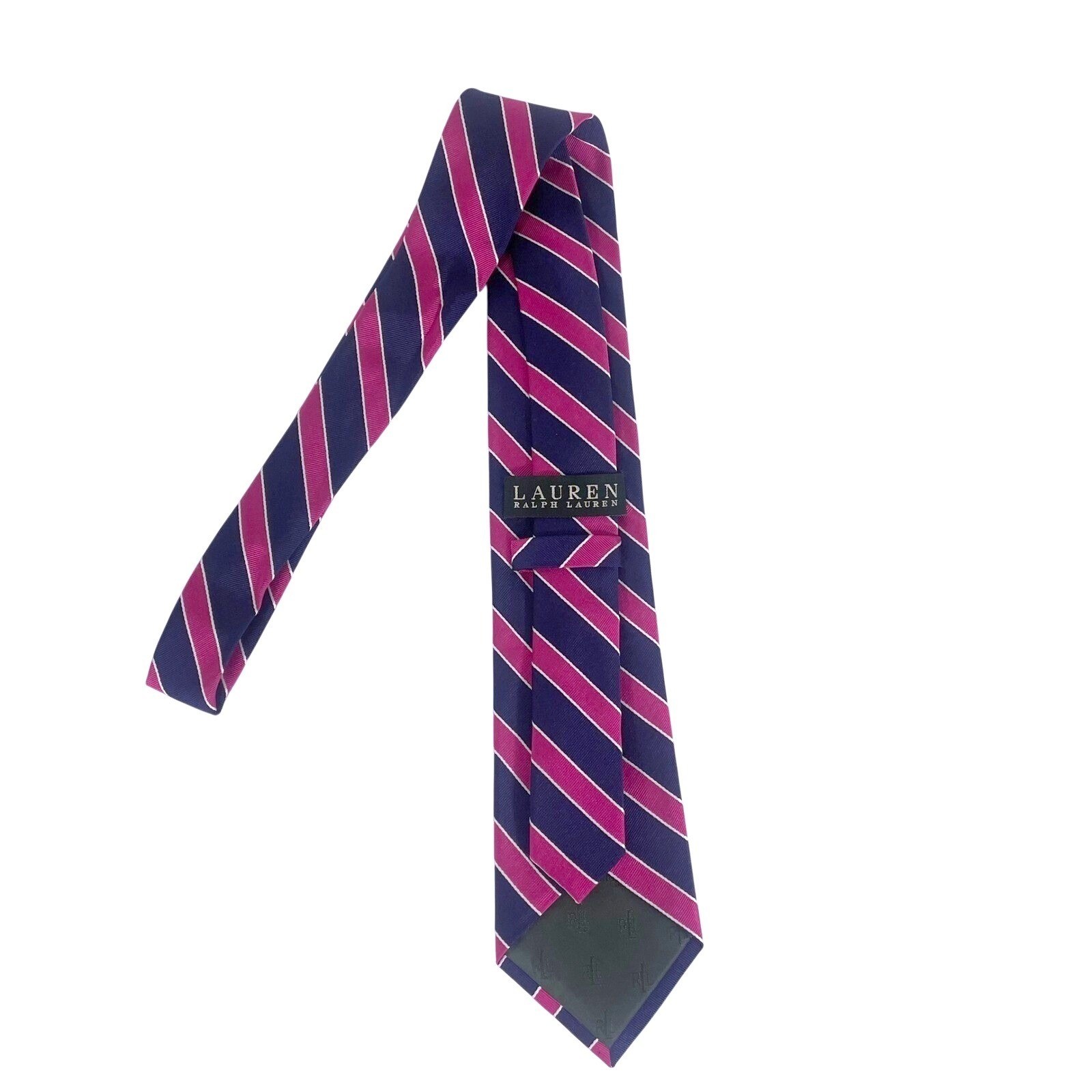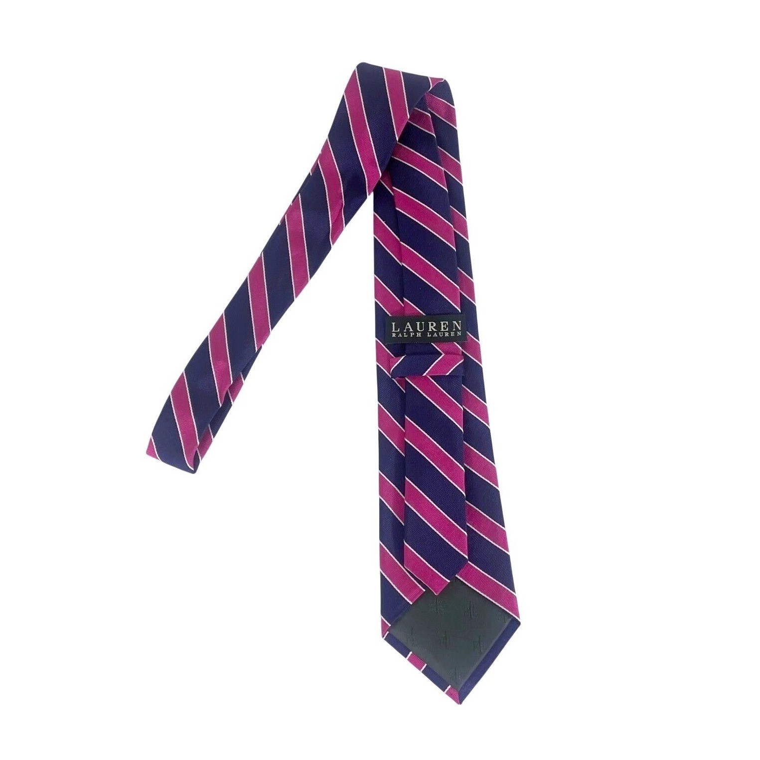 Lauren Ralph Lauren Silk Repp Tie Stripe Navy Pink White Hand Made