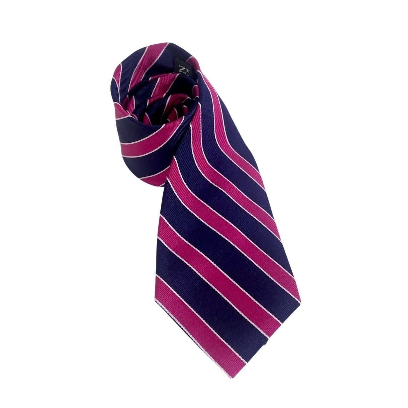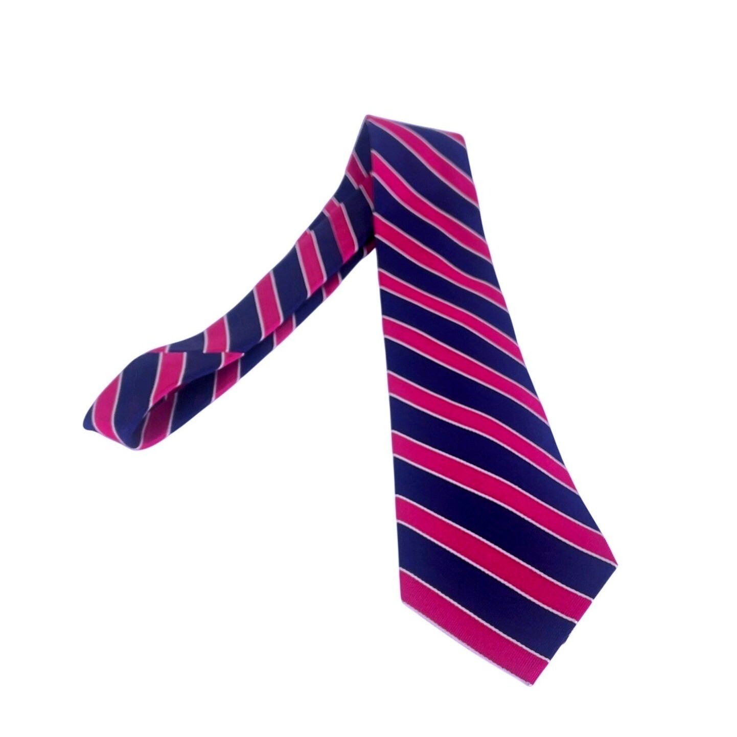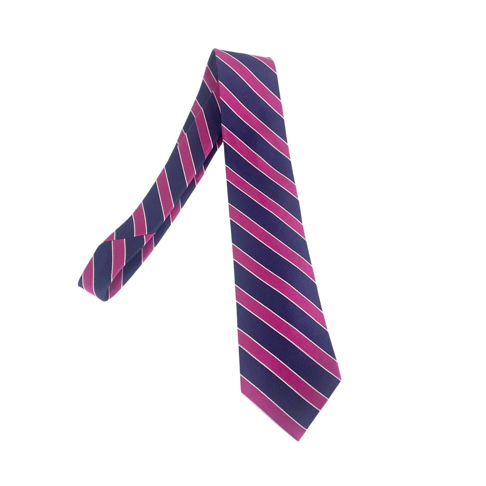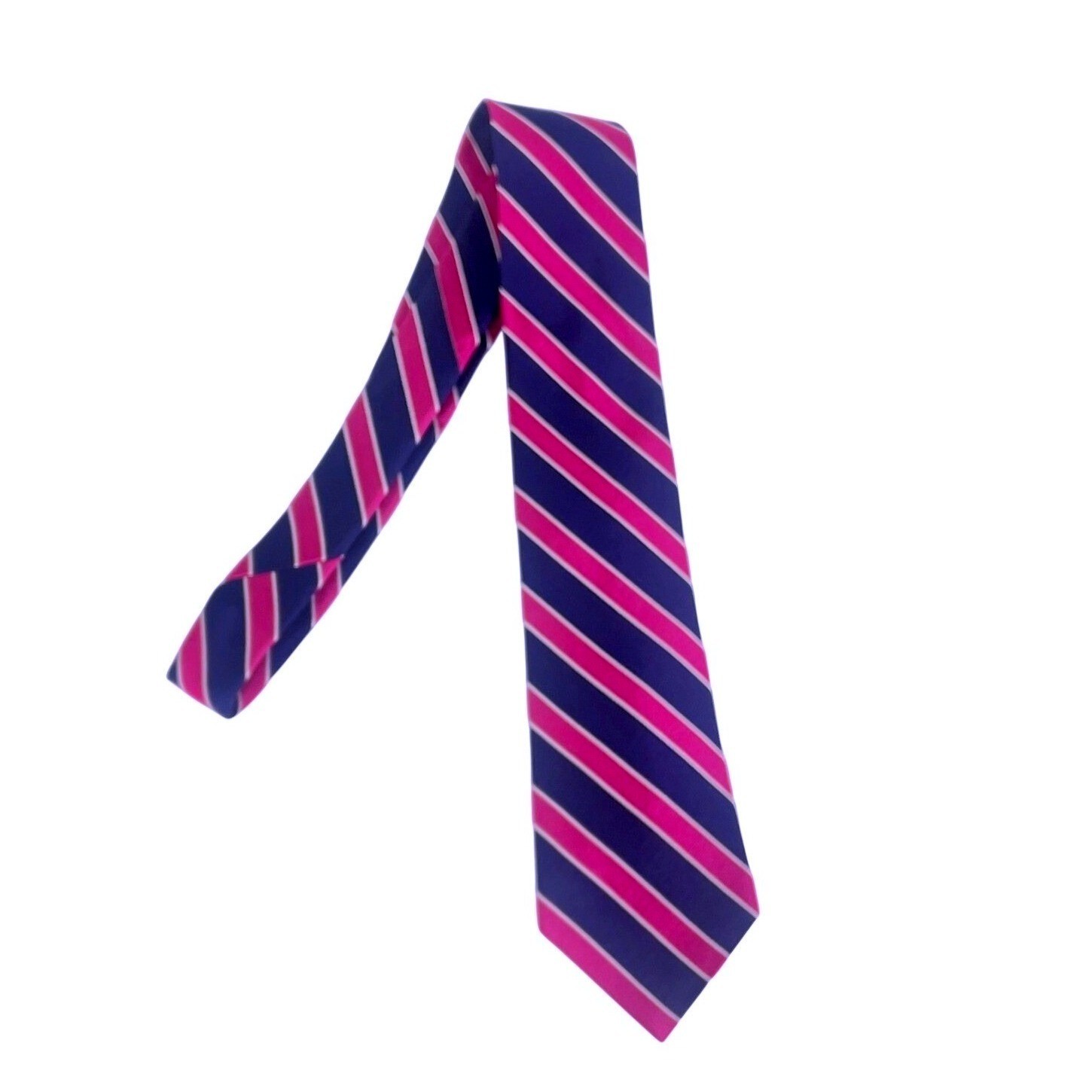 Lauren Ralph Lauren Silk Repp Tie Stripe Navy Pink White Hand Made