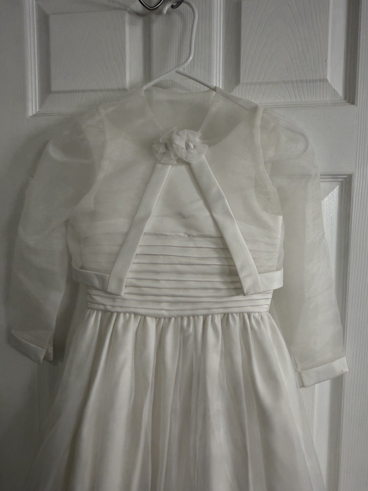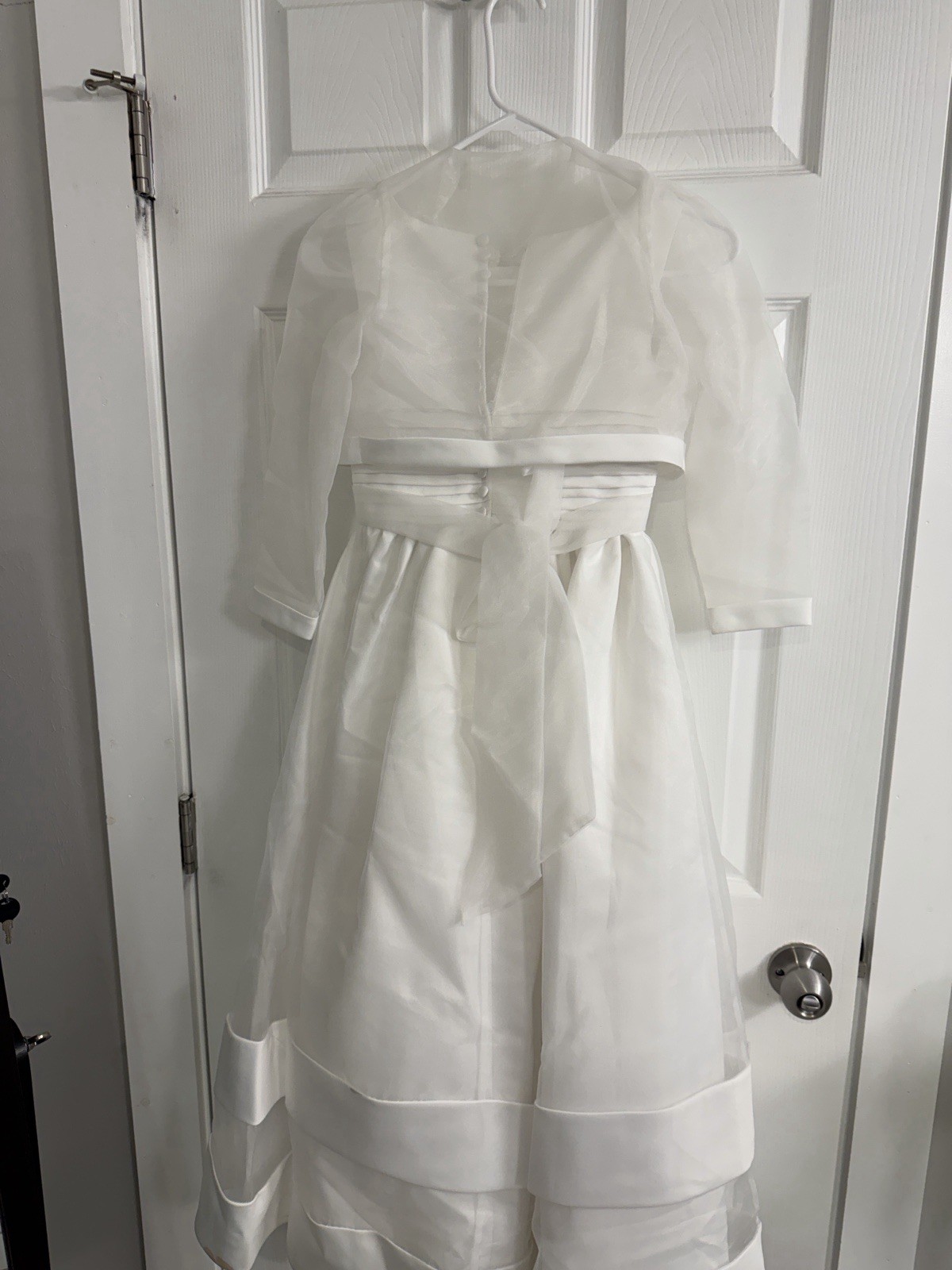 Kids Flower Girl Or Communion Layered Long Elegant White Dress