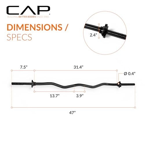 47 Standard Threaded Solid Easy Curl Bar - Weightlifting, Strength Training, Ho