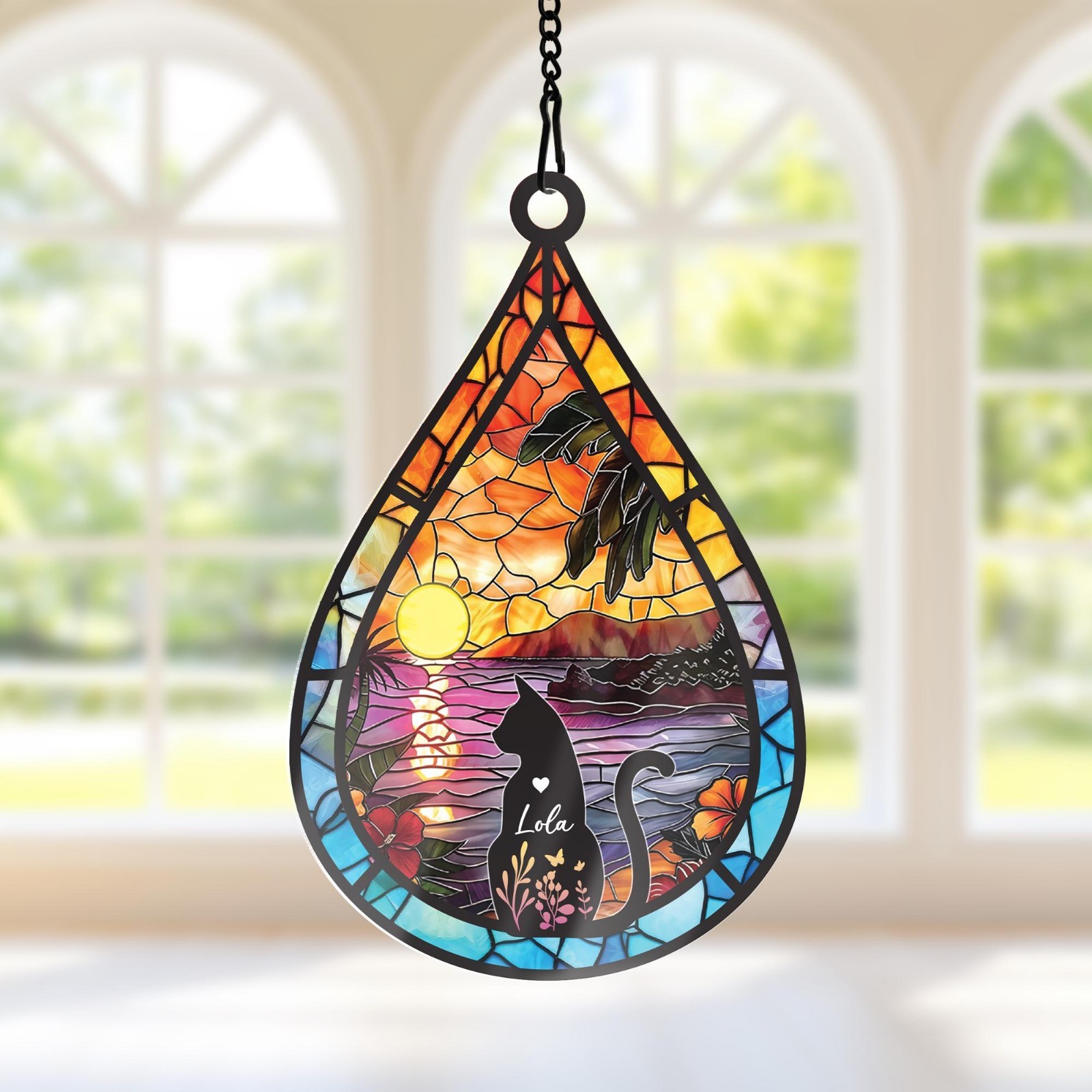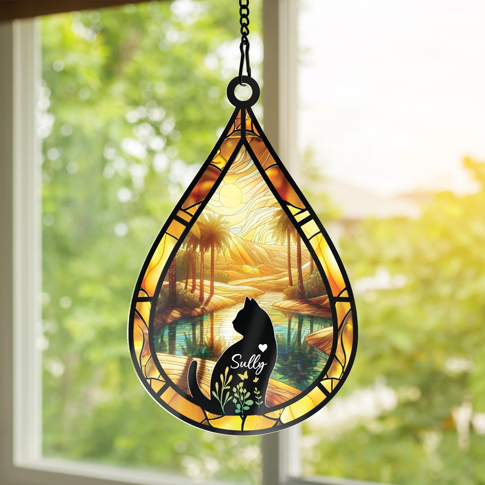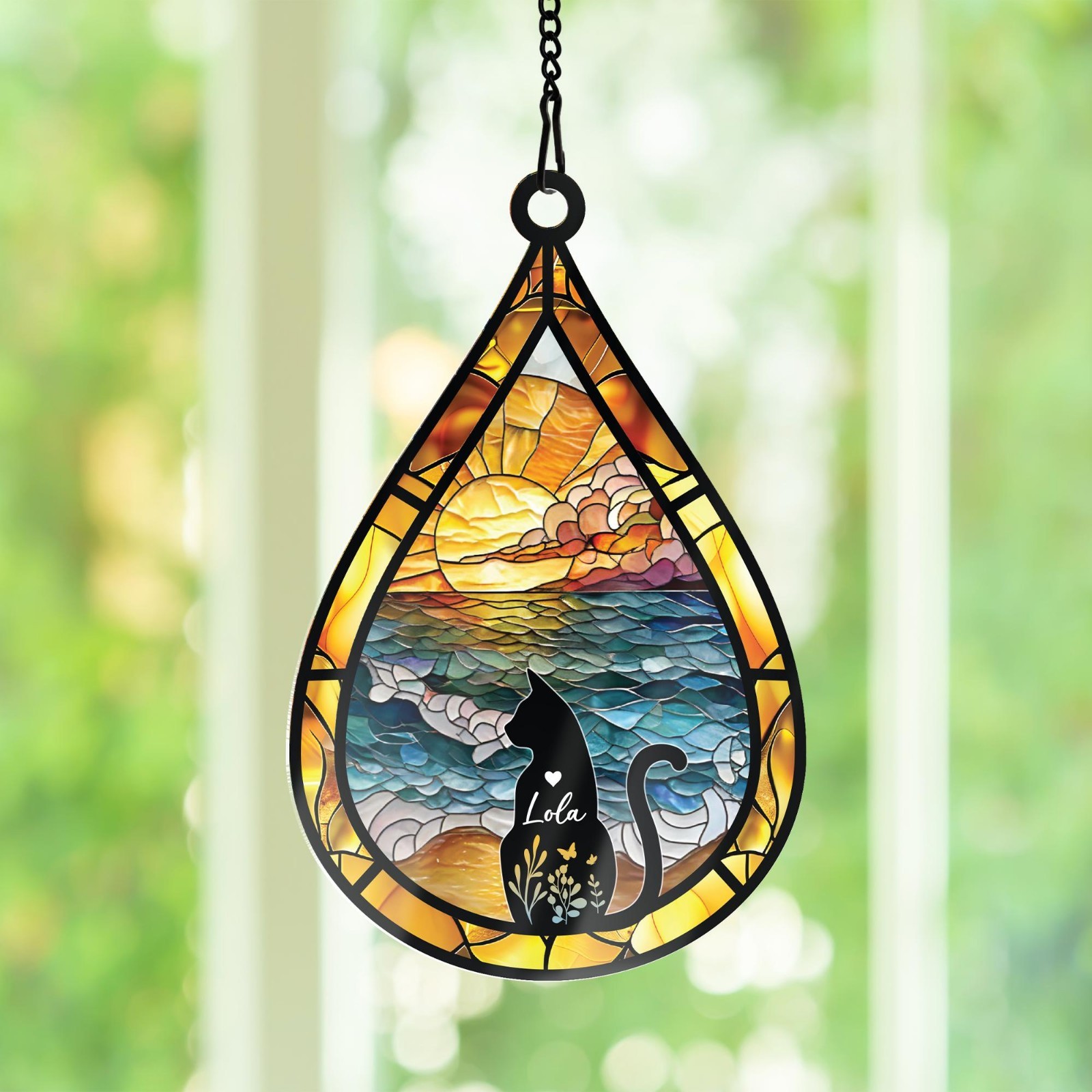 Personalized Cat Memorial Suncatcher, Custom Name Teardrop Pet Loss Gift