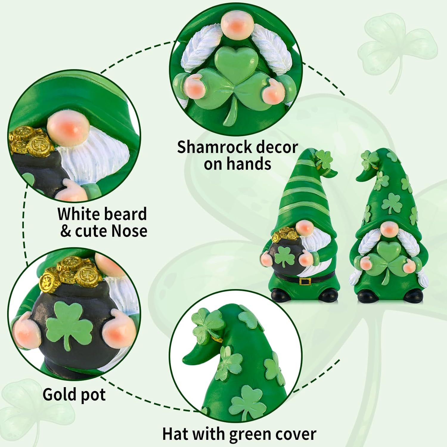 Handcrafted Irish Gnomes - 2 Pack Lucky Leprechaun Figurines for St. Patrick's D