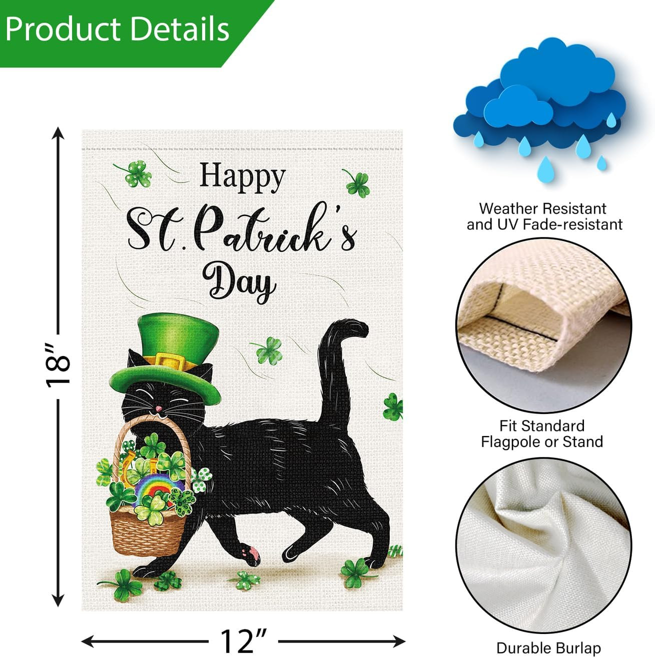 St. Patrick's Day Double-Sided Garden Flag with Black Cat and Shamrock Design