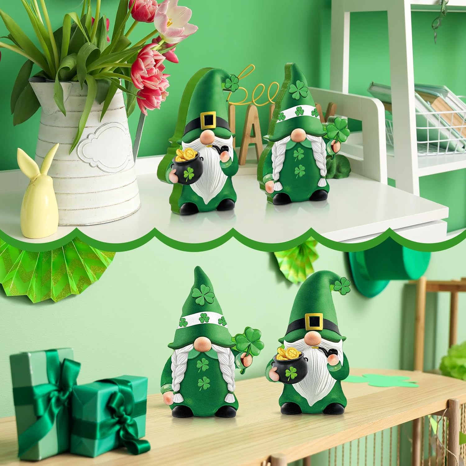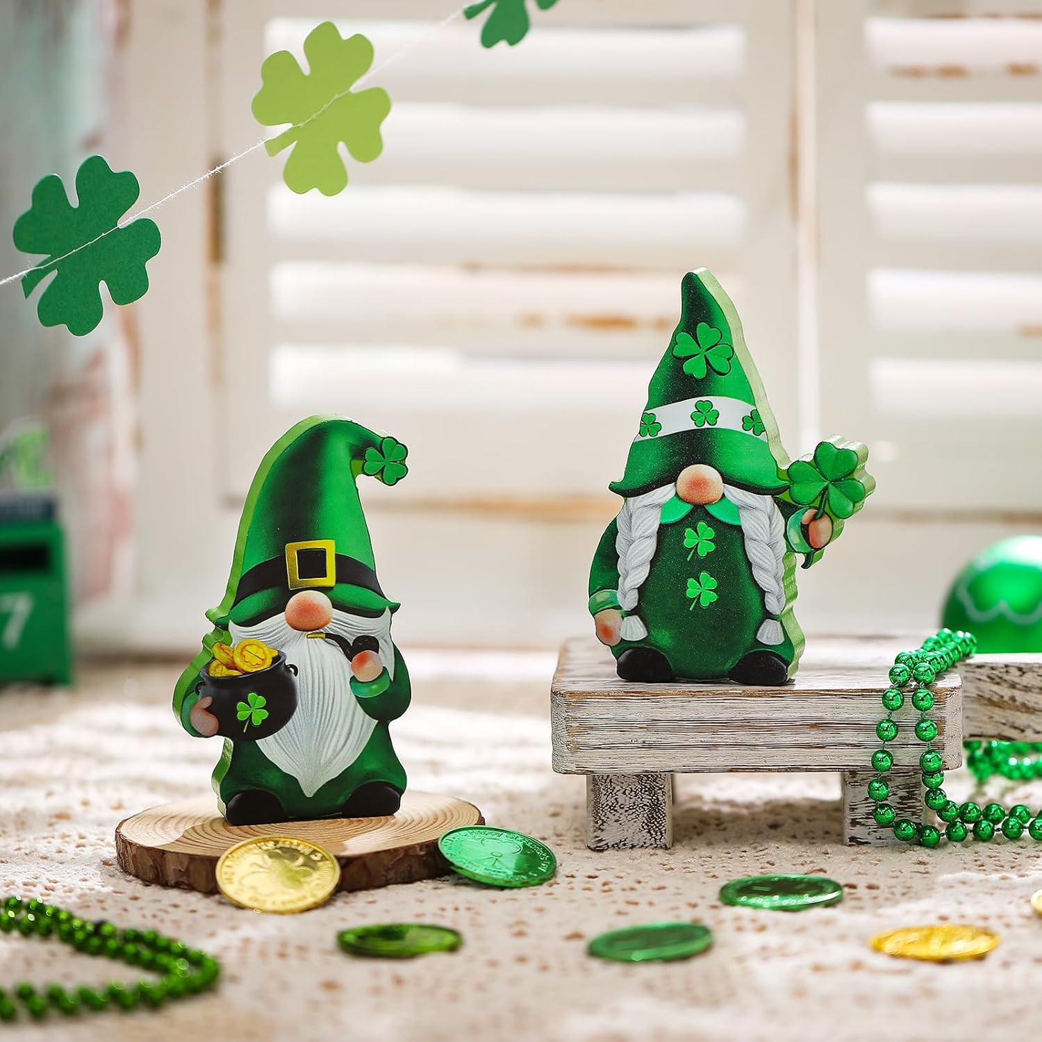 St. Patrick's Day Gnome Figurines - 2 Pcs Wooden Irish Decor for Home Office