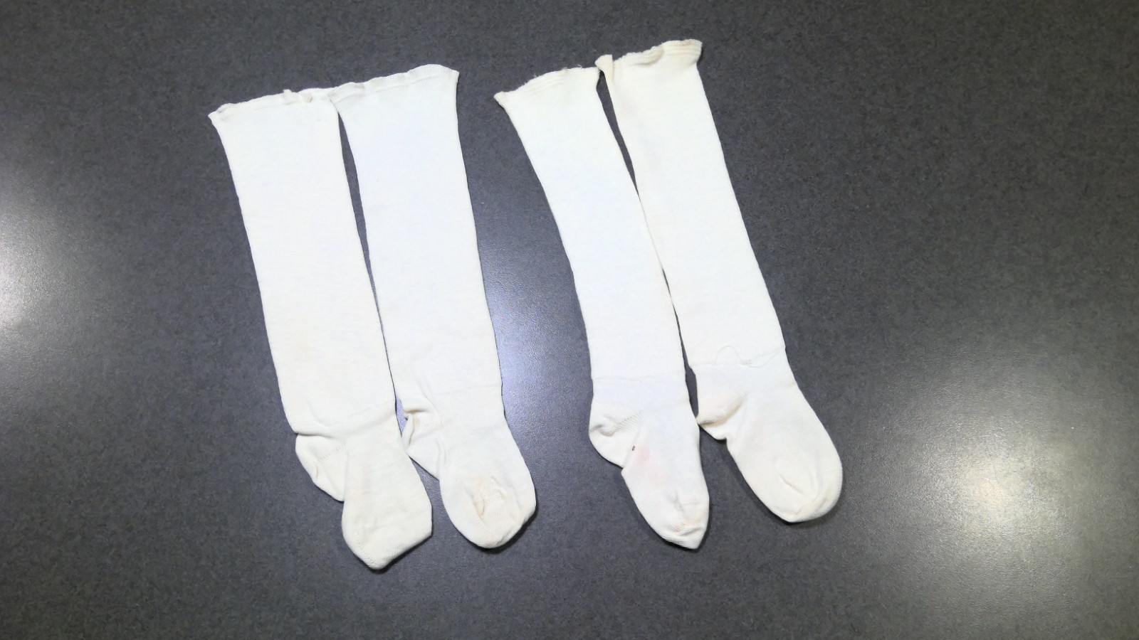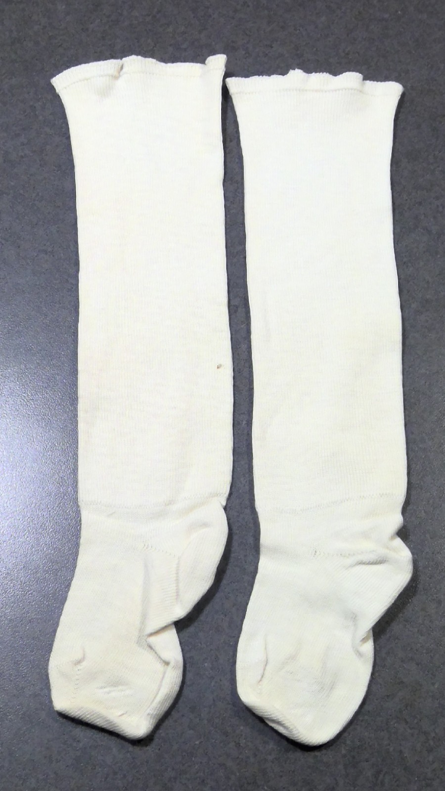как выглядит VTG Infant Girl White Knit Knee High Socks 1940s Combed Cotton Made in USA фото